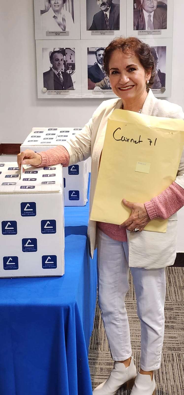 Ciudad Juárez.- Elizabeth Villalobos quien fue electa esta tarde como presidenta de la Cámara Nacional de Comercio (Canaco), señaló que iniciará trabajando por la unidad en el organismo empresarial y por las mujeres para quienes ya se tenía proyectado un encuentro empresarial en próximas fechas.