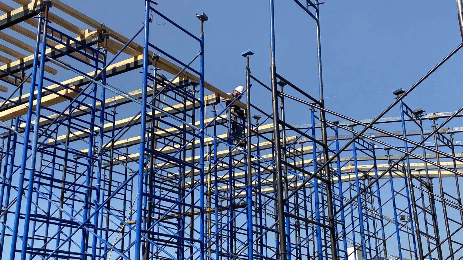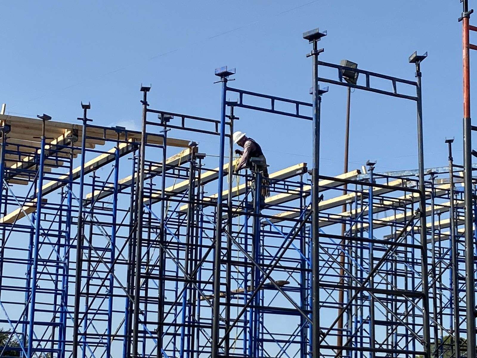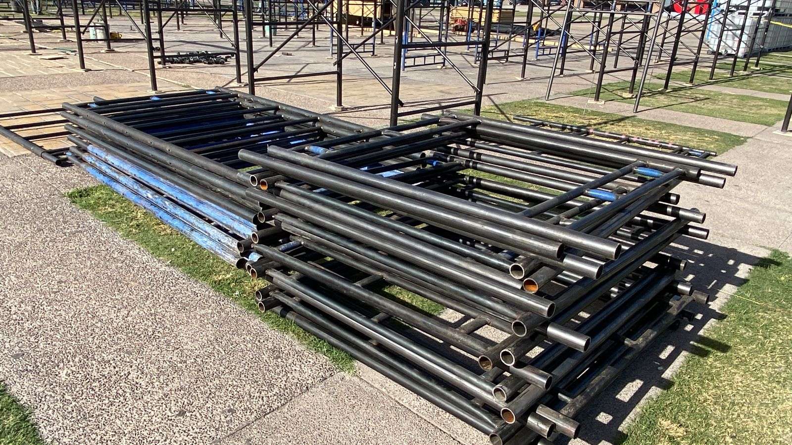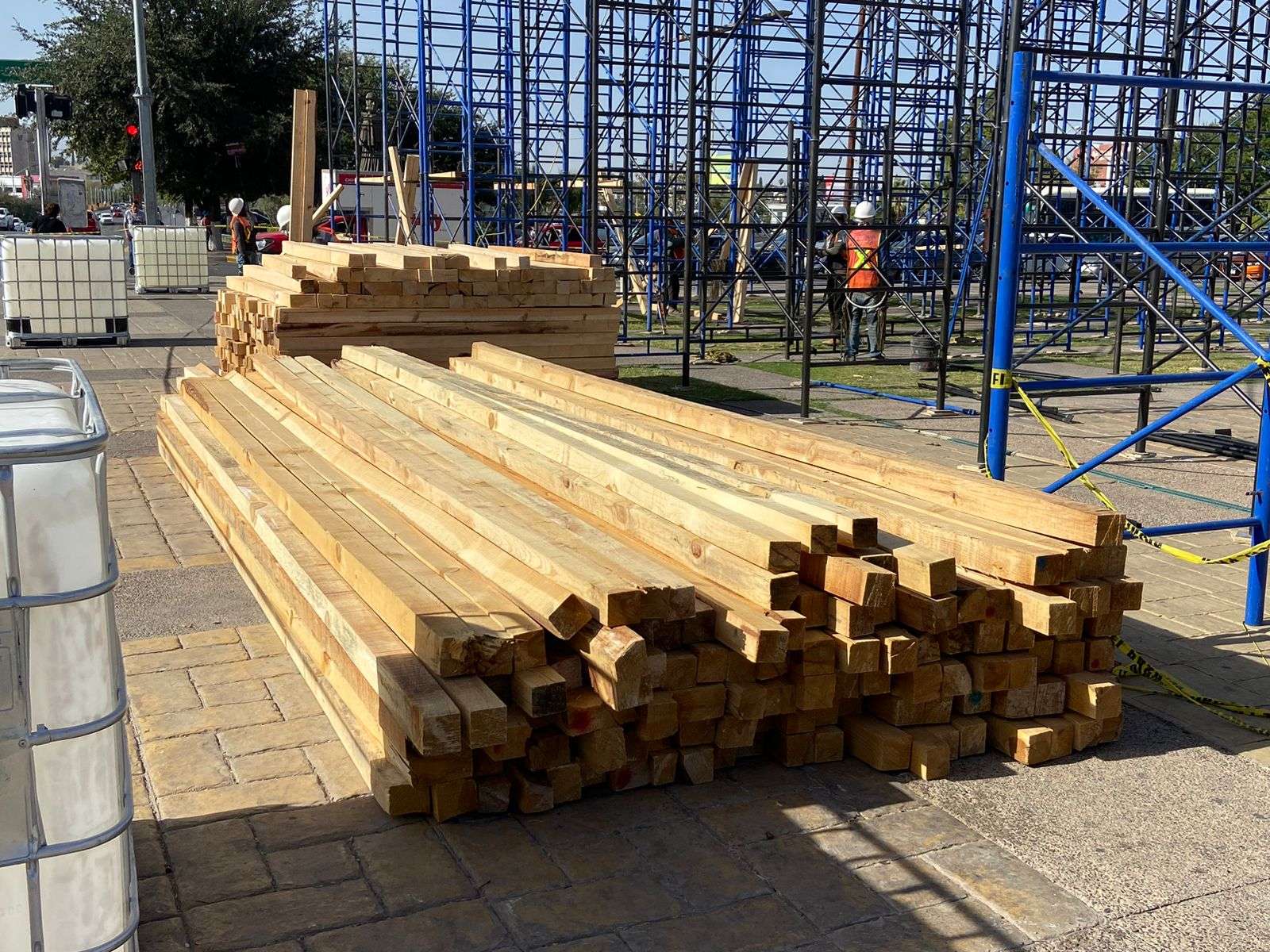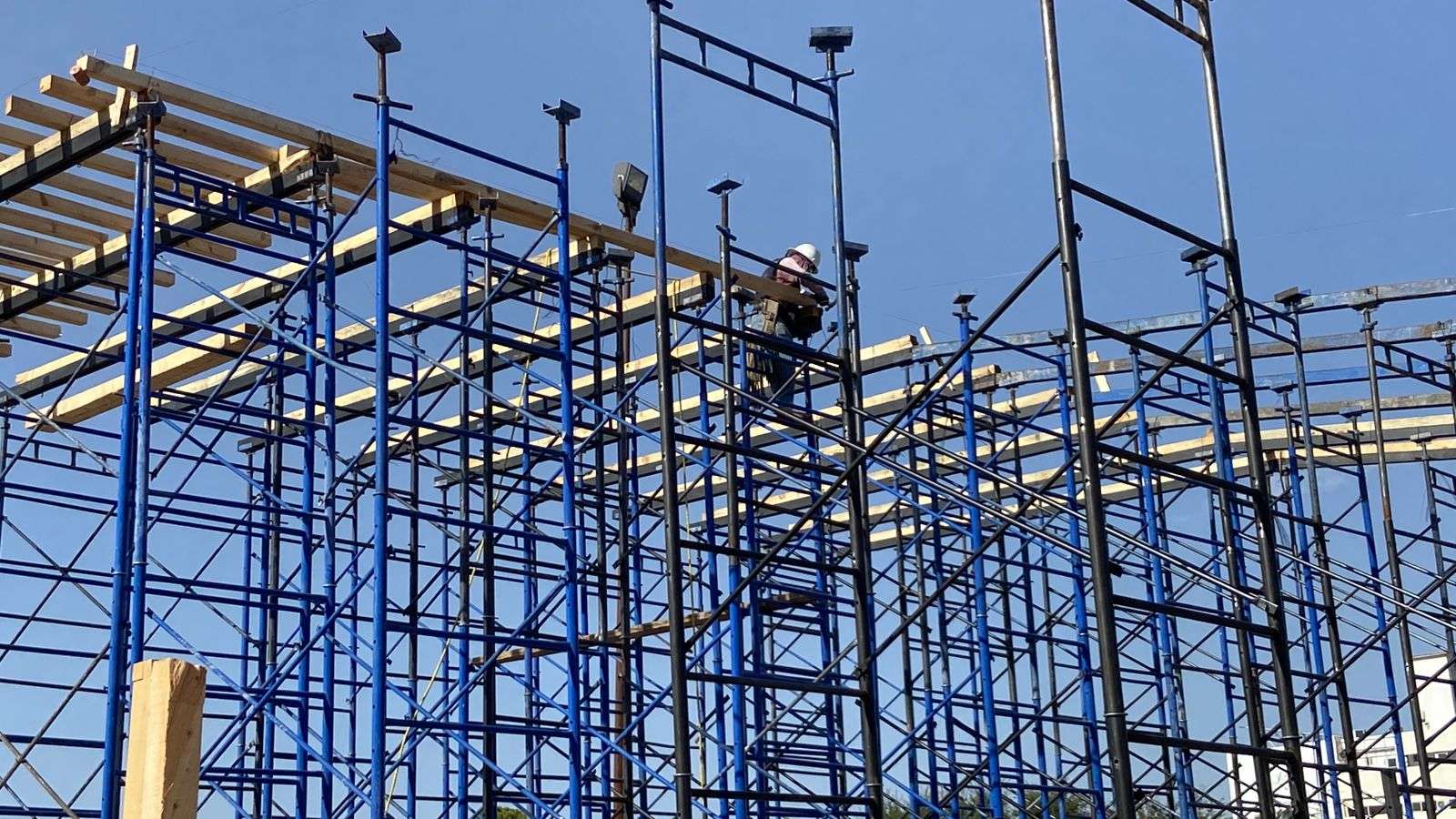 Chihuahua.- Una cuadrilla de trabajadores se encuentra instalando una estructura de madera y acero para lo que será un tobogán congelado durante las fiestas decembrinas.