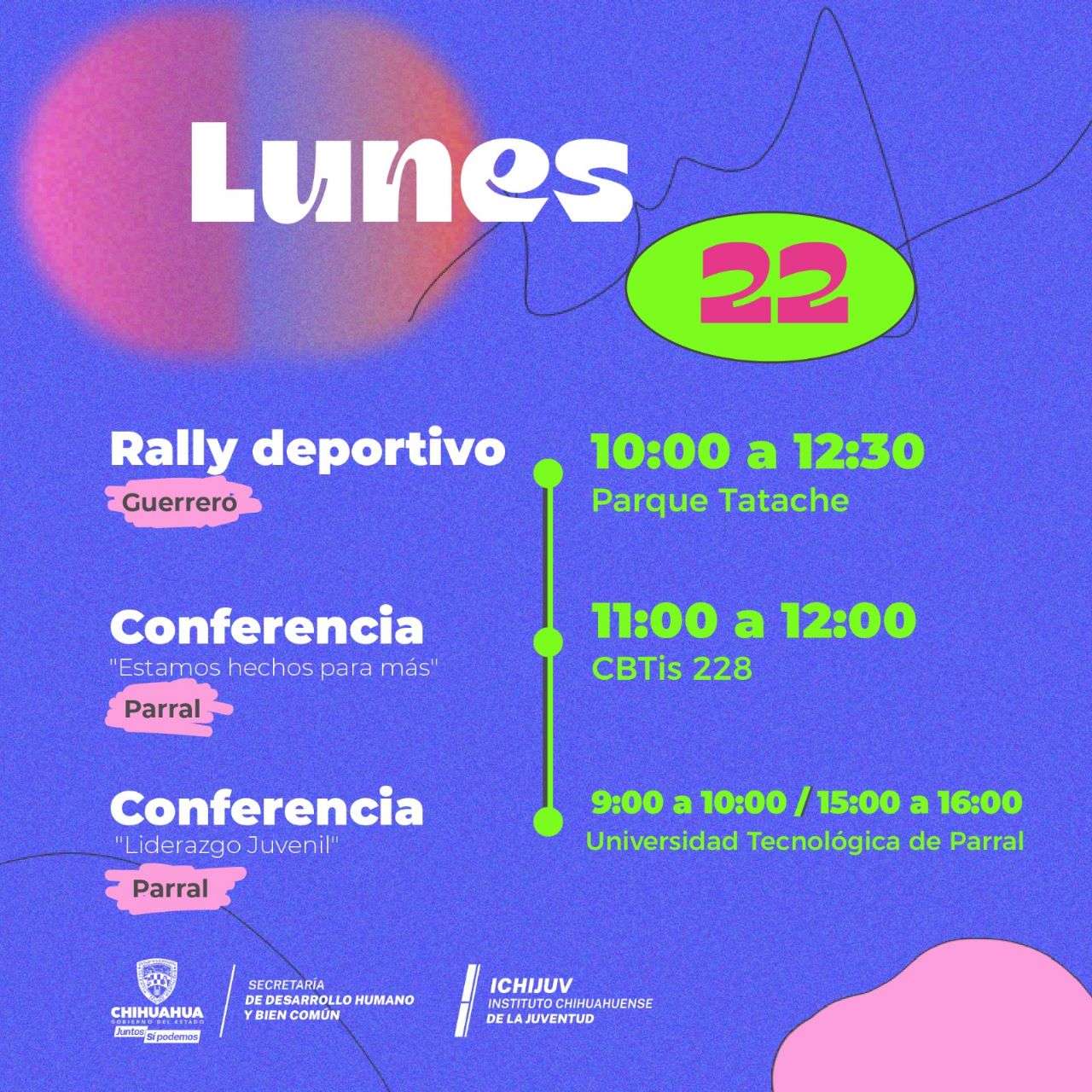 La agenda inicia el lunes 22 de mayo con un rally interactivo en el Parque Tatache, en el municipio de Guerrero, a partir de las 10:00 am.
