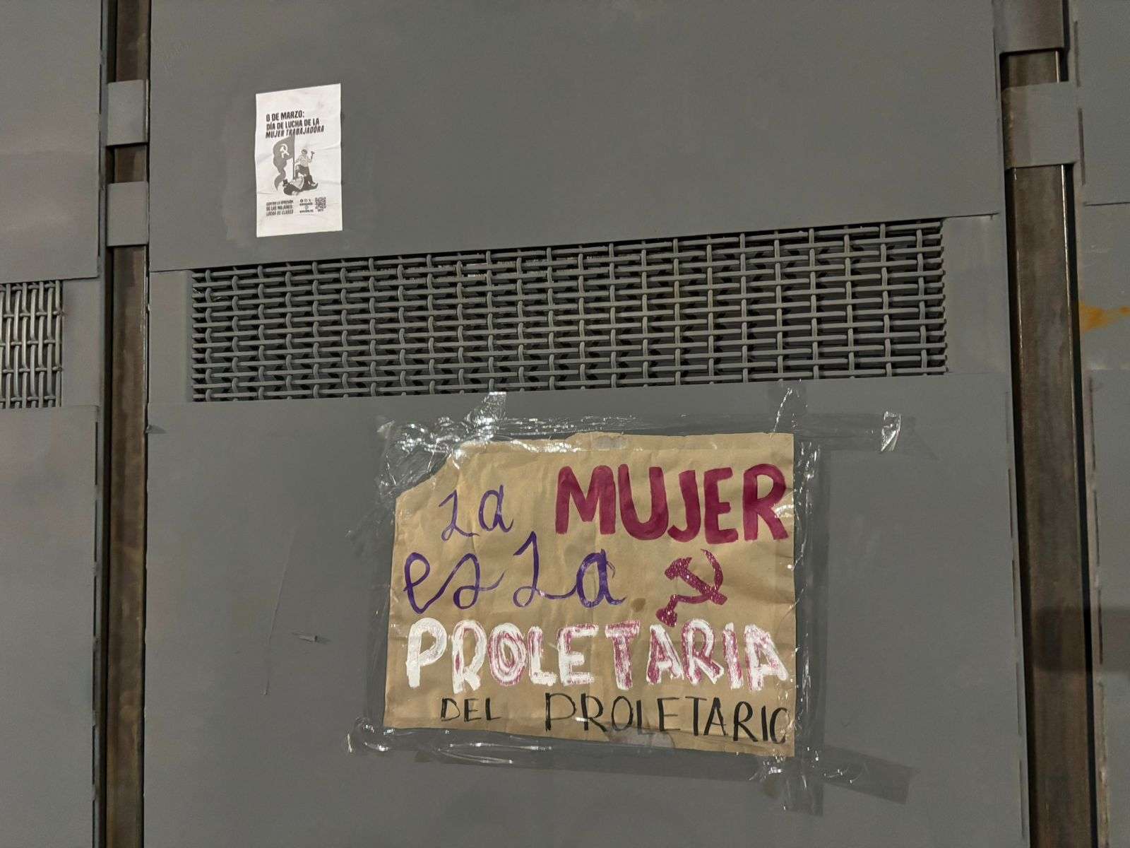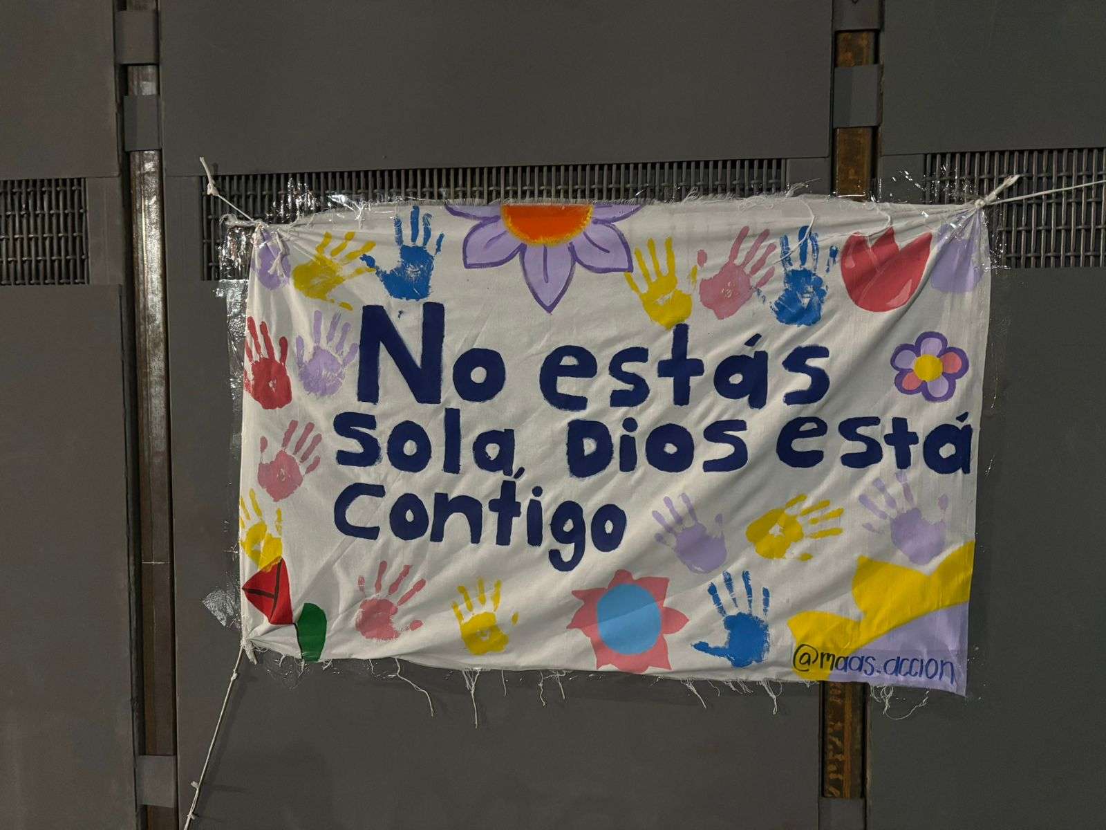 Entre los mensajes visibles se encuentran frases como “No estás sola, Dios está contigo” y “La mujer es la proletaria del proletario”.