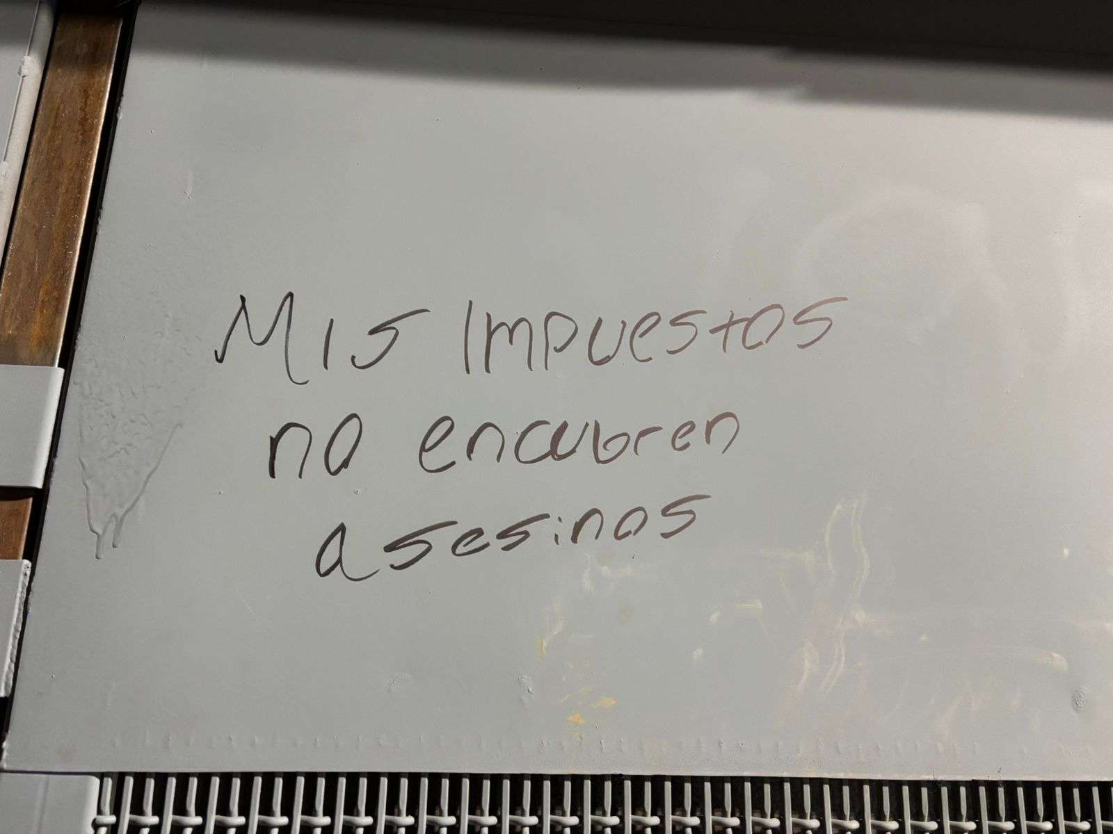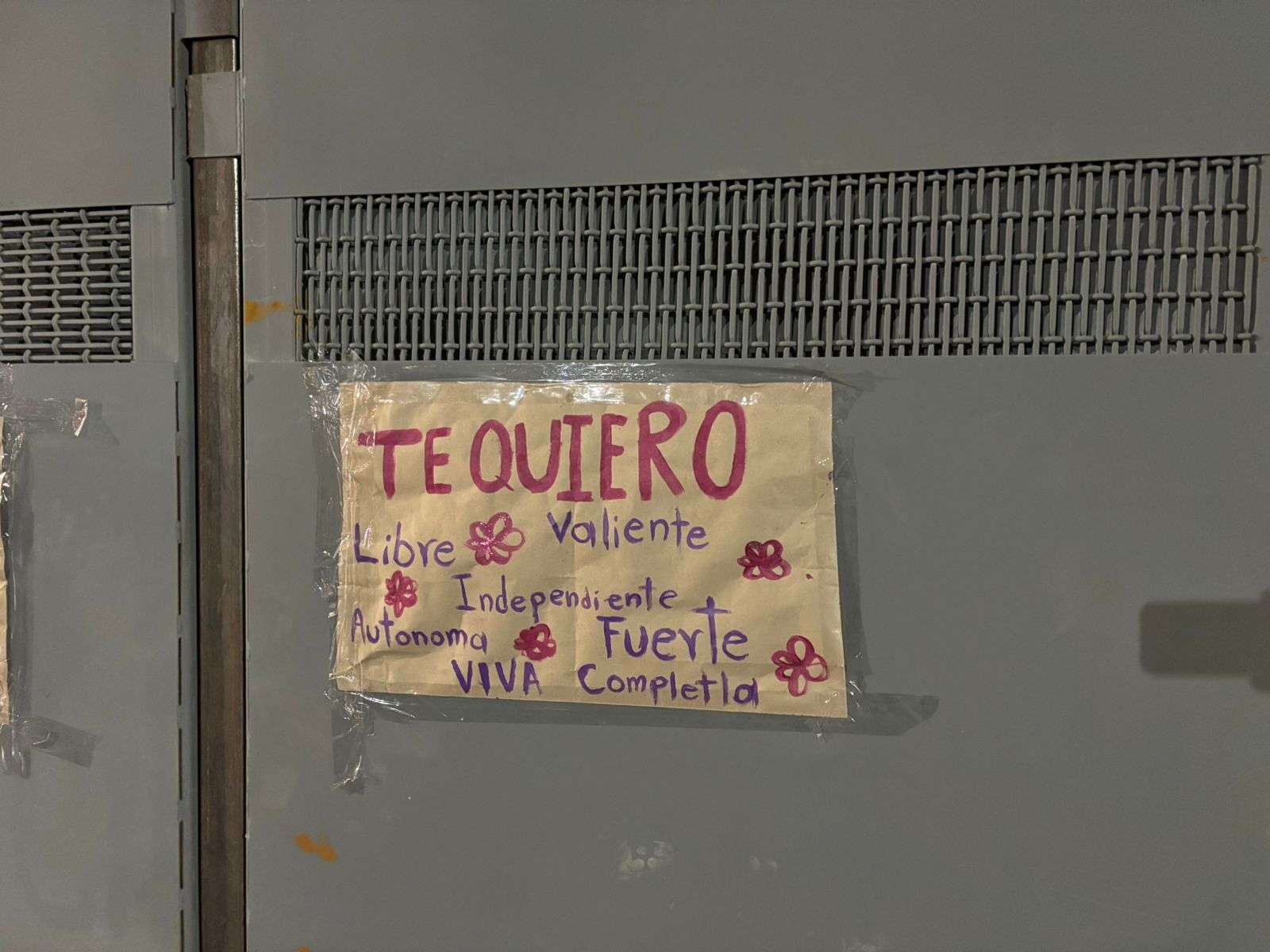 También se observan otras consignas como “Te quiero valiente, libre, independiente, autónoma, fuerte, viva, completa”, además de panfletos de carácter partidista adheridos a las vallas metálicas instaladas en la zona.