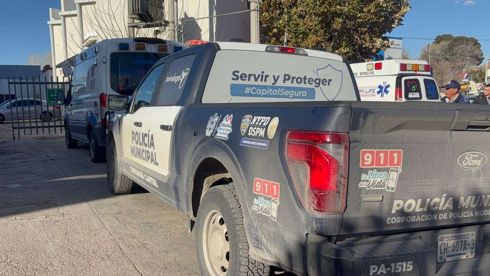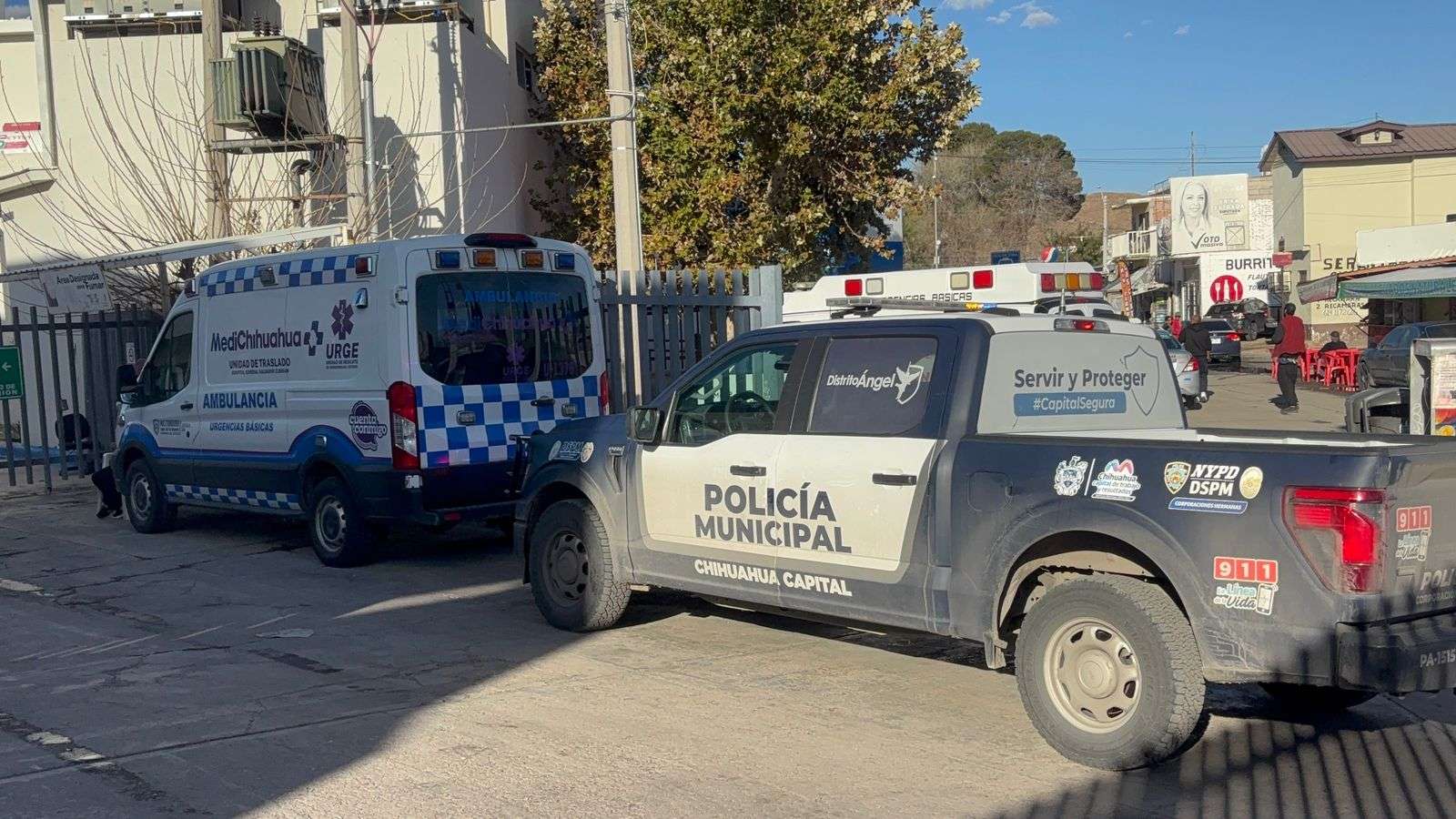 Chihuahua, Chih.– Unidades de la Dirección de Seguridad Pública Municipal y de la Fiscalía General del Estado se desplegaron al exterior del Hospital General Salvador Zubirán, luego de que una de las personas lesionadas en el ataque registrado en el cruce de las avenidas Lombardo Toledano y Teófilo Borunda, de la avenida Sacramento, acudiera por su propio pie a solicitar atención médica.