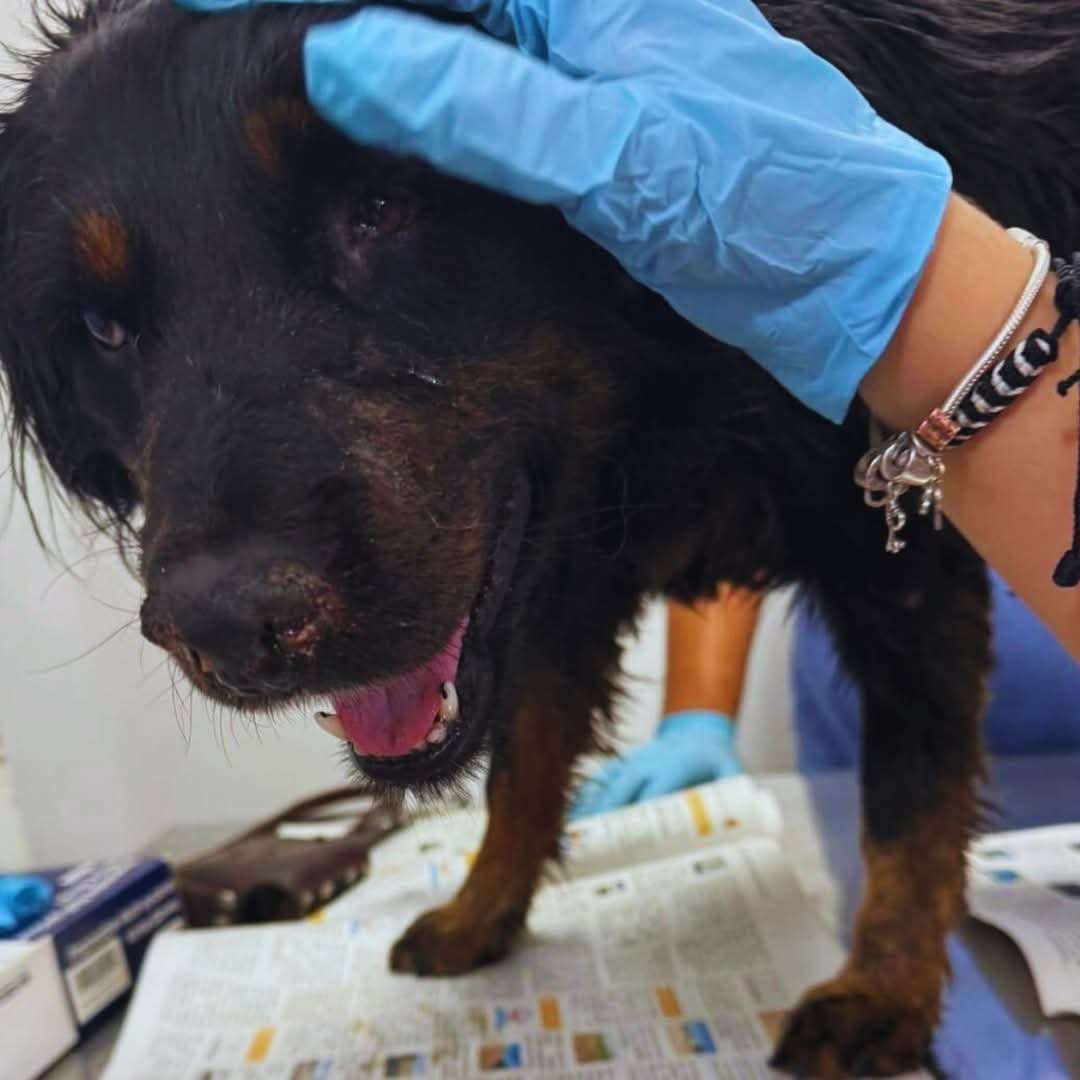 Chihuahua.- Valentín, un perro en situación de calle que fue rescatado tras quedar atrapado en chapopote, avanza favorablemente en su recuperación bajo el cuidado de veterinarios especializados.