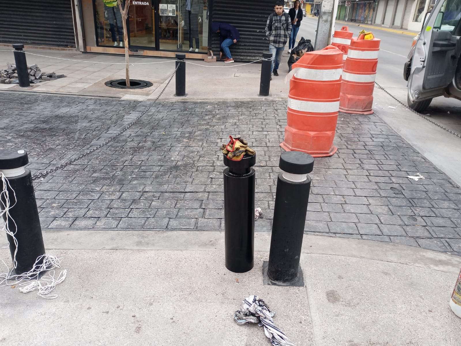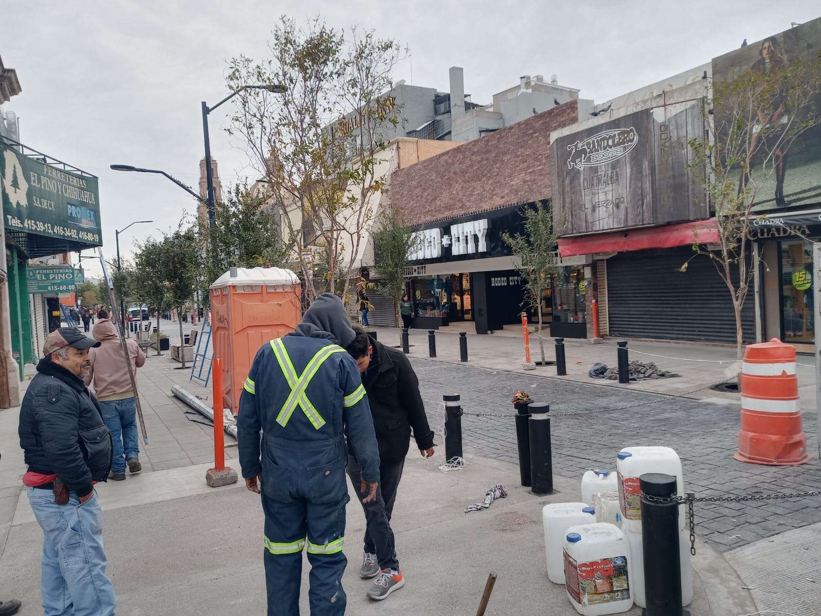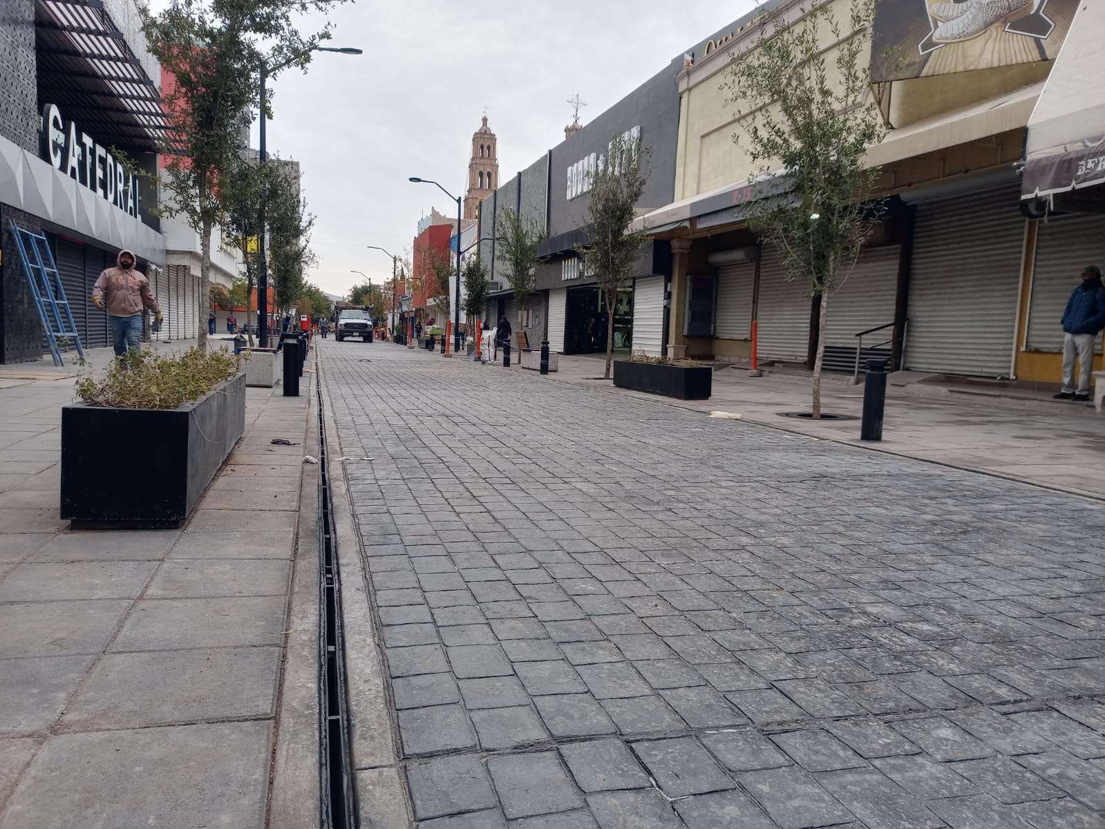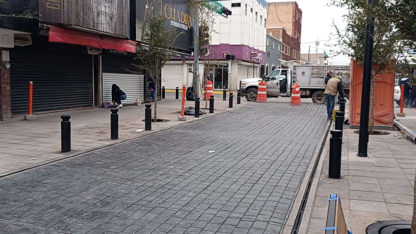Chihuahua.- Trabajadores de Municipio realizaron los últimos detalles de trabajos de peatonalización en la calle Libertad, que ya cuenta con un avance del 90% pudiéndose apreciar los adoquines que instalaron dejando atrás el pavimento.