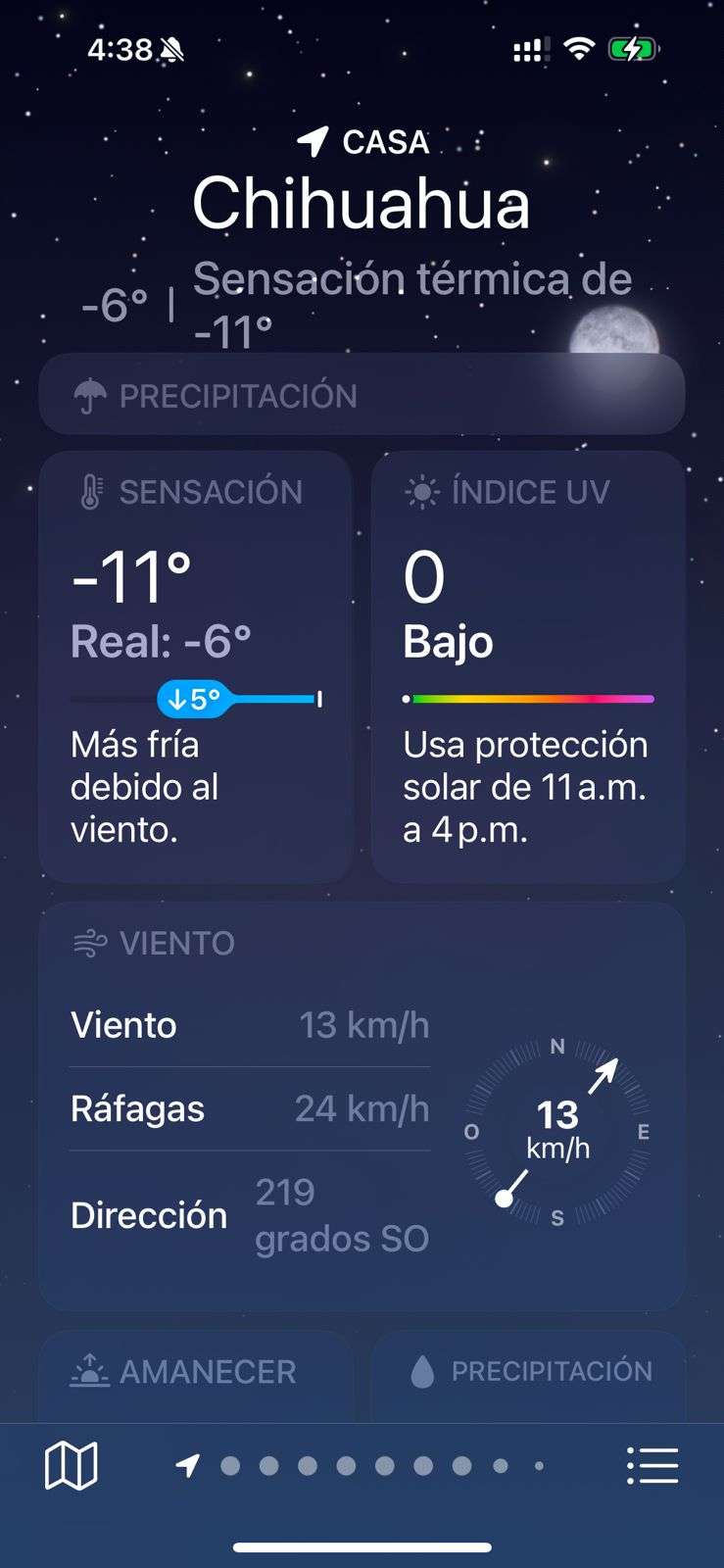 Chihuahua.- Después de la nevada, el clima en la ciudad bajó a -6 grados con una sensación térmica de -11 grados.