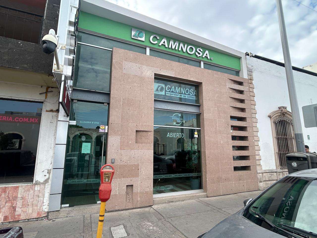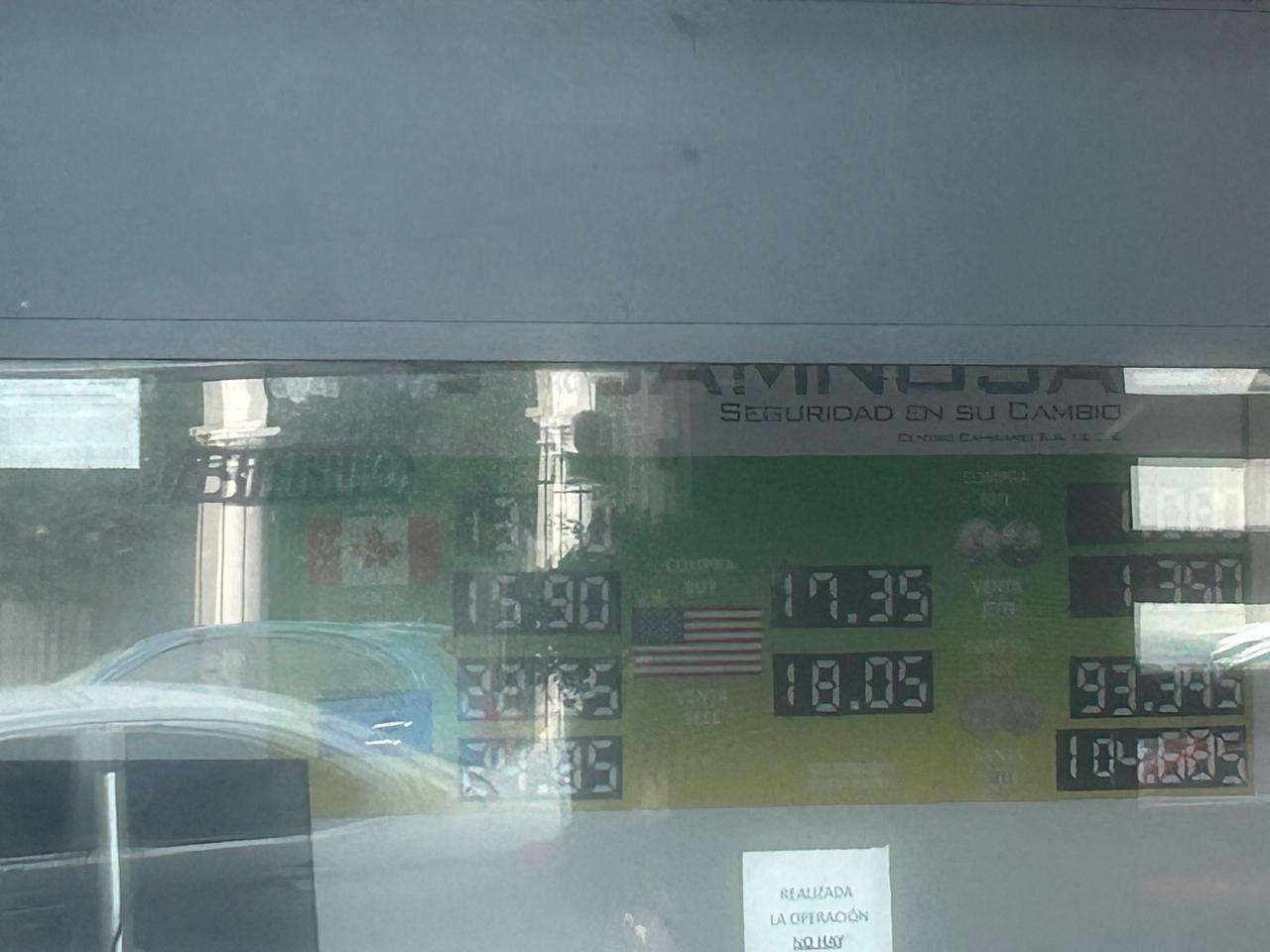 En un recorrido realizado por la zona, se pudo constatar que la sucursal de la casa de cambio Camnosa, situada en la intersección de la calle Aldama y casi esquina con Ocampo, estableció sus precios de referencia en $17.35 pesos para la compra y en $18.05 pesos para la venta.