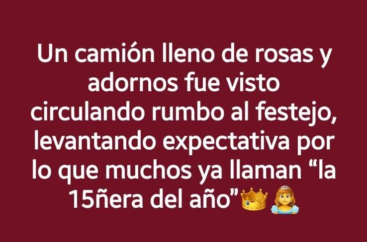 Chihuahua.- Un camión cargado con rosas y adornos fue visto circulando rumbo a la Mesa de San Rafael, lo que generó gran expectación entre habitantes de la región y usuarios de redes sociales, quienes comenzaron a referirse al evento como la quinceañera del año.