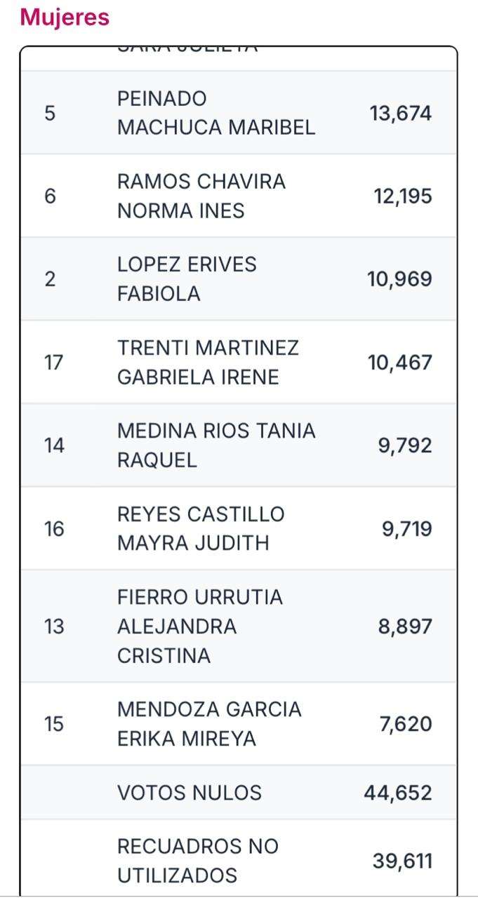 - Peinado Machuca Maribel con 13 mil 674 votos
