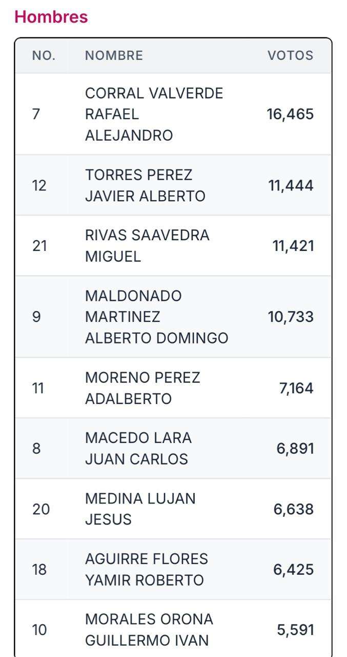 - Corral Valverde Rafael Alejandro con 16 mil 465 votos
