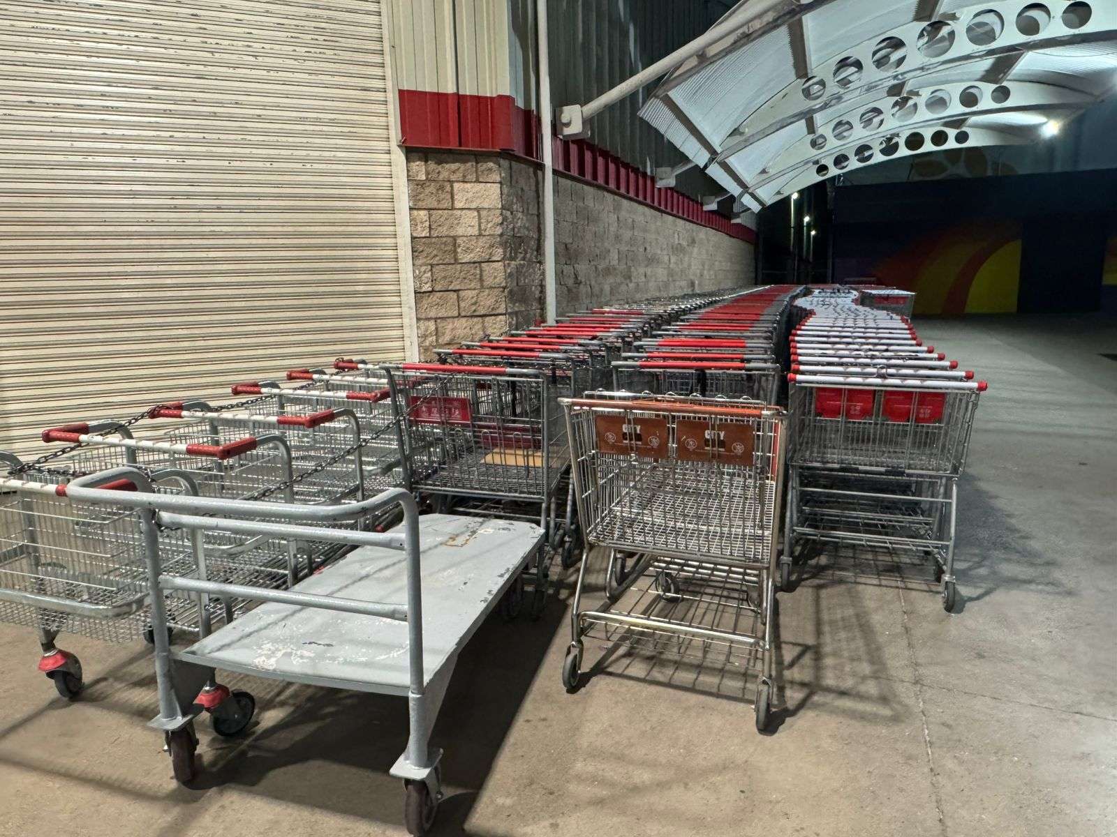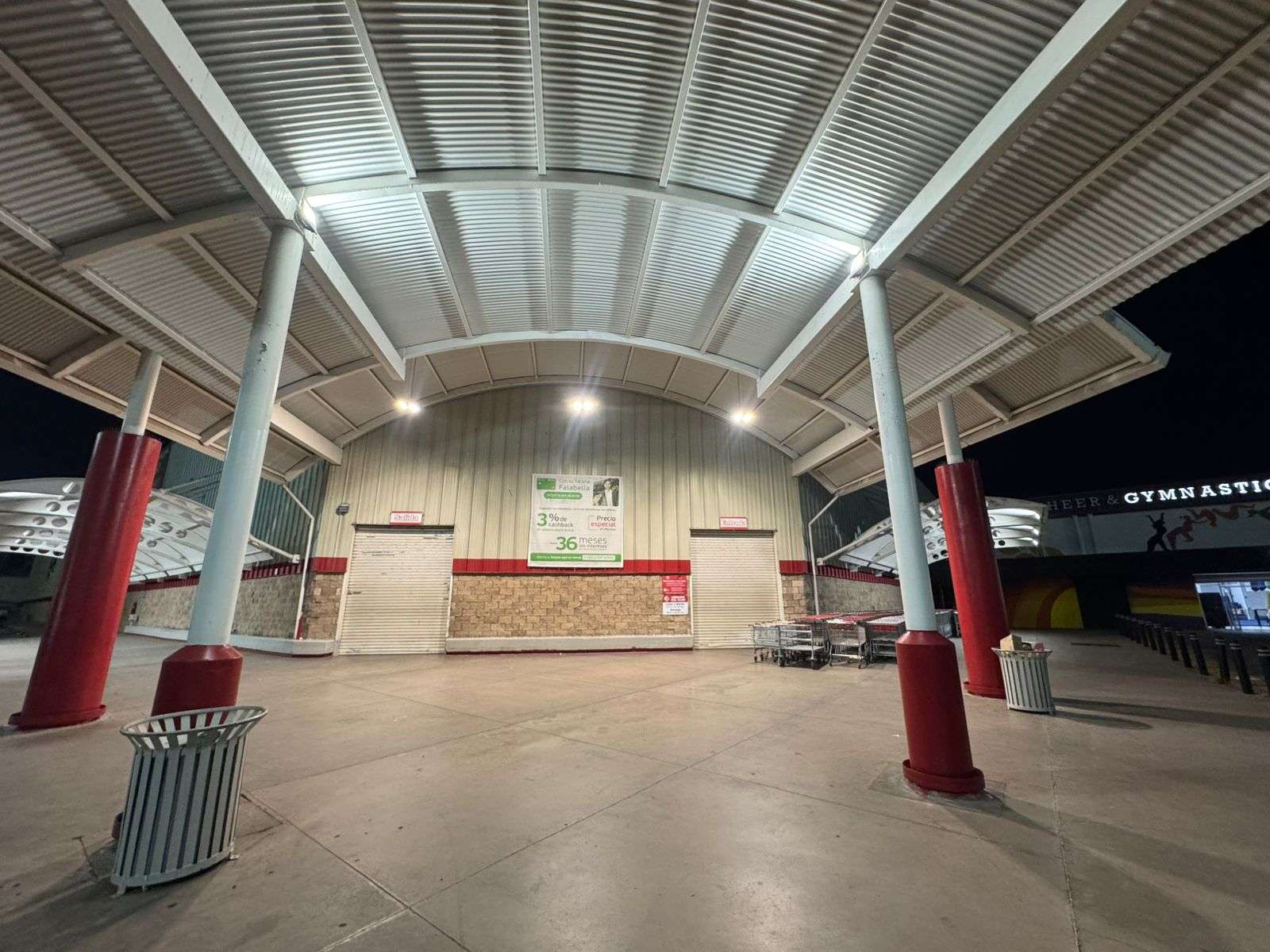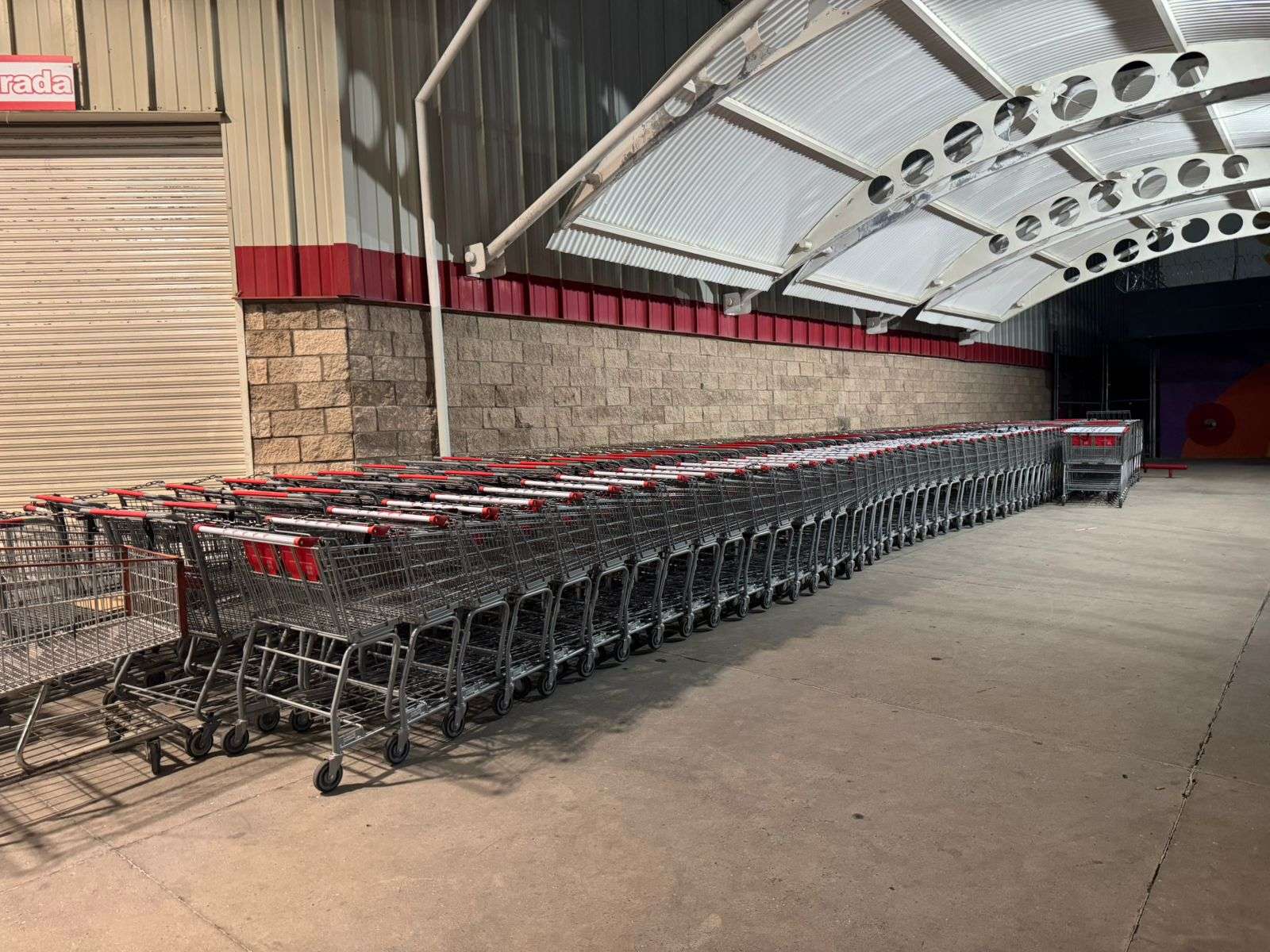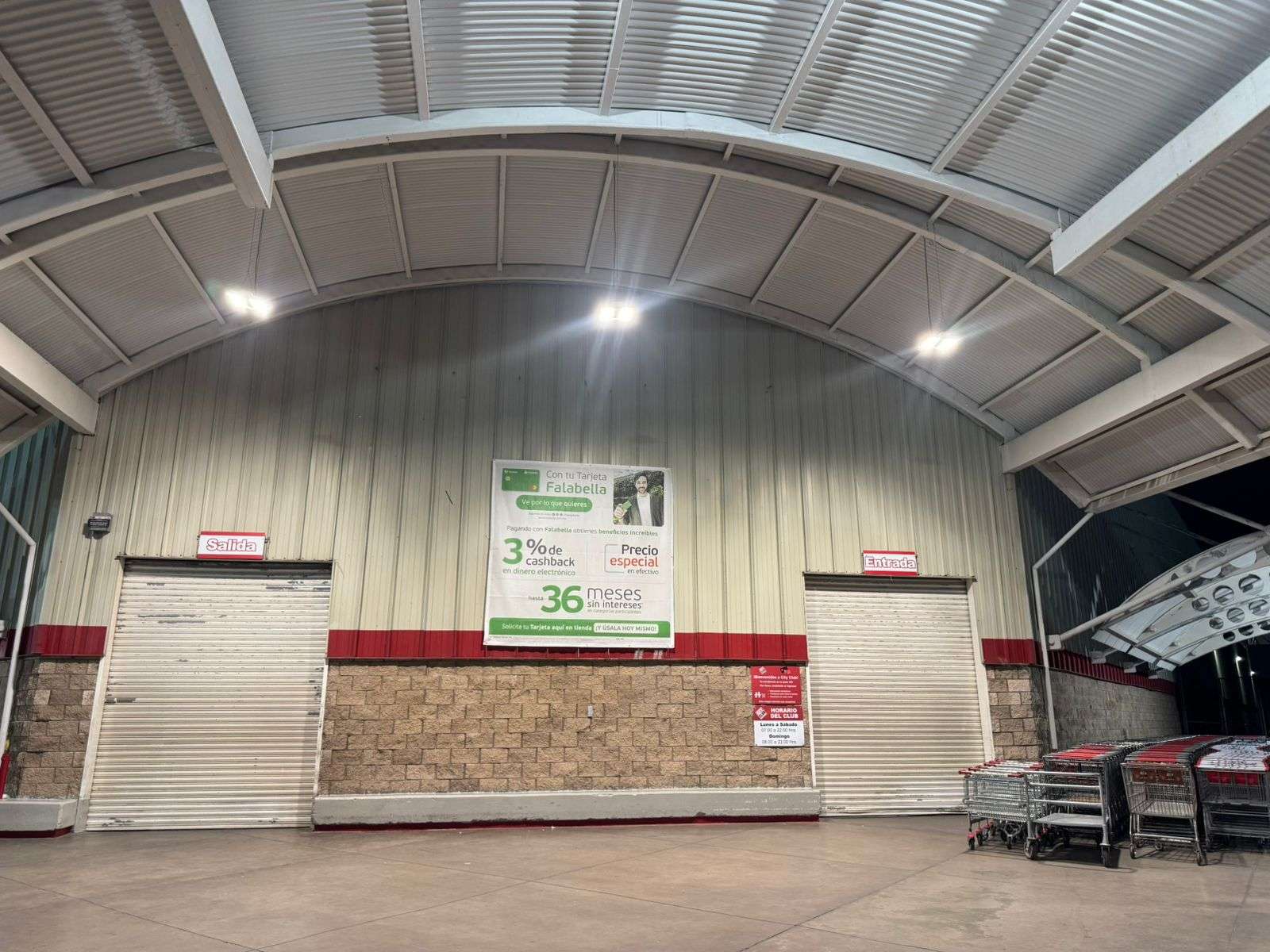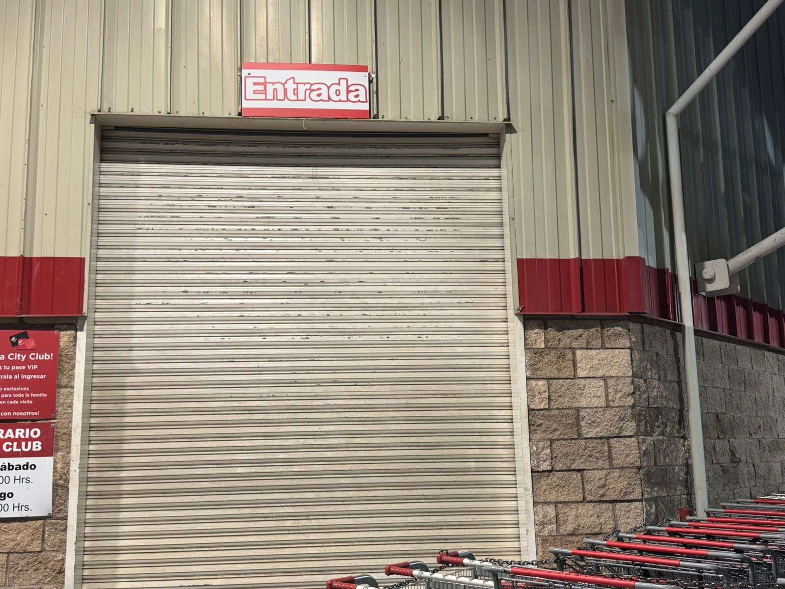 Están las cortinas abajo y los cientos de carritos de compras ordenados en la entrada.
