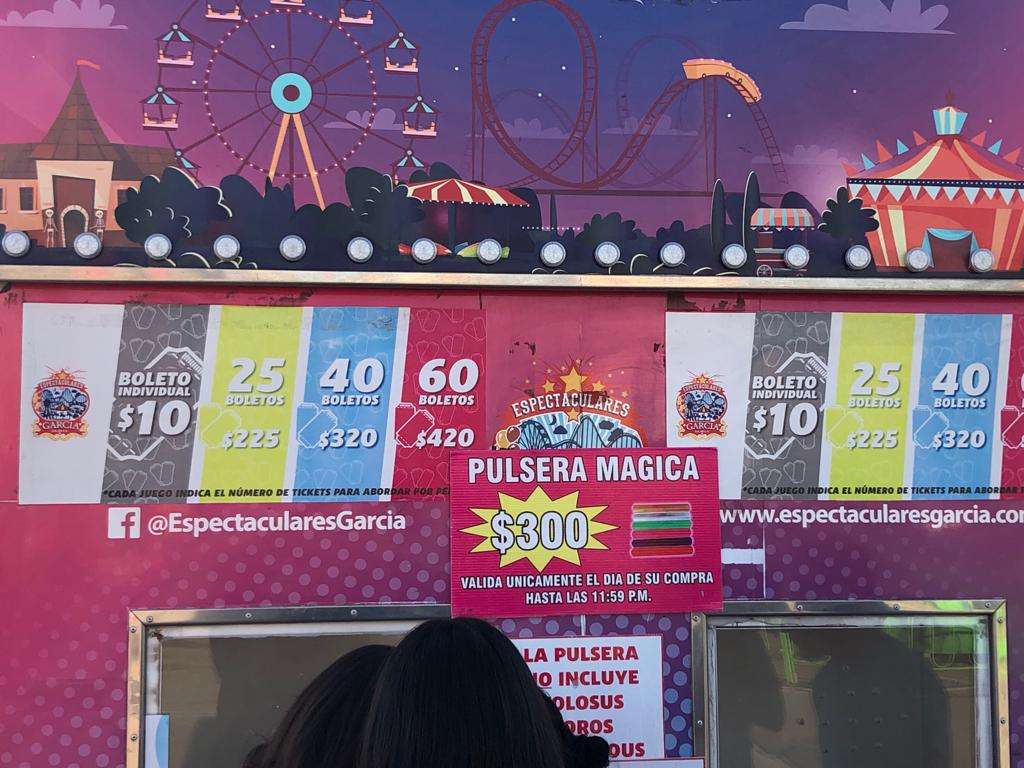 Según se pudo apreciar en la taquilla cada boleto individual tiene un costo de 10 pesos, 25 boletos por 225 pesos, 40 boletos por 320 y 60 boletos por 420 pesos y se encontraba la pulsera mágica por 300 pesos por persona, obviamente valida únicamente el día de su compra.