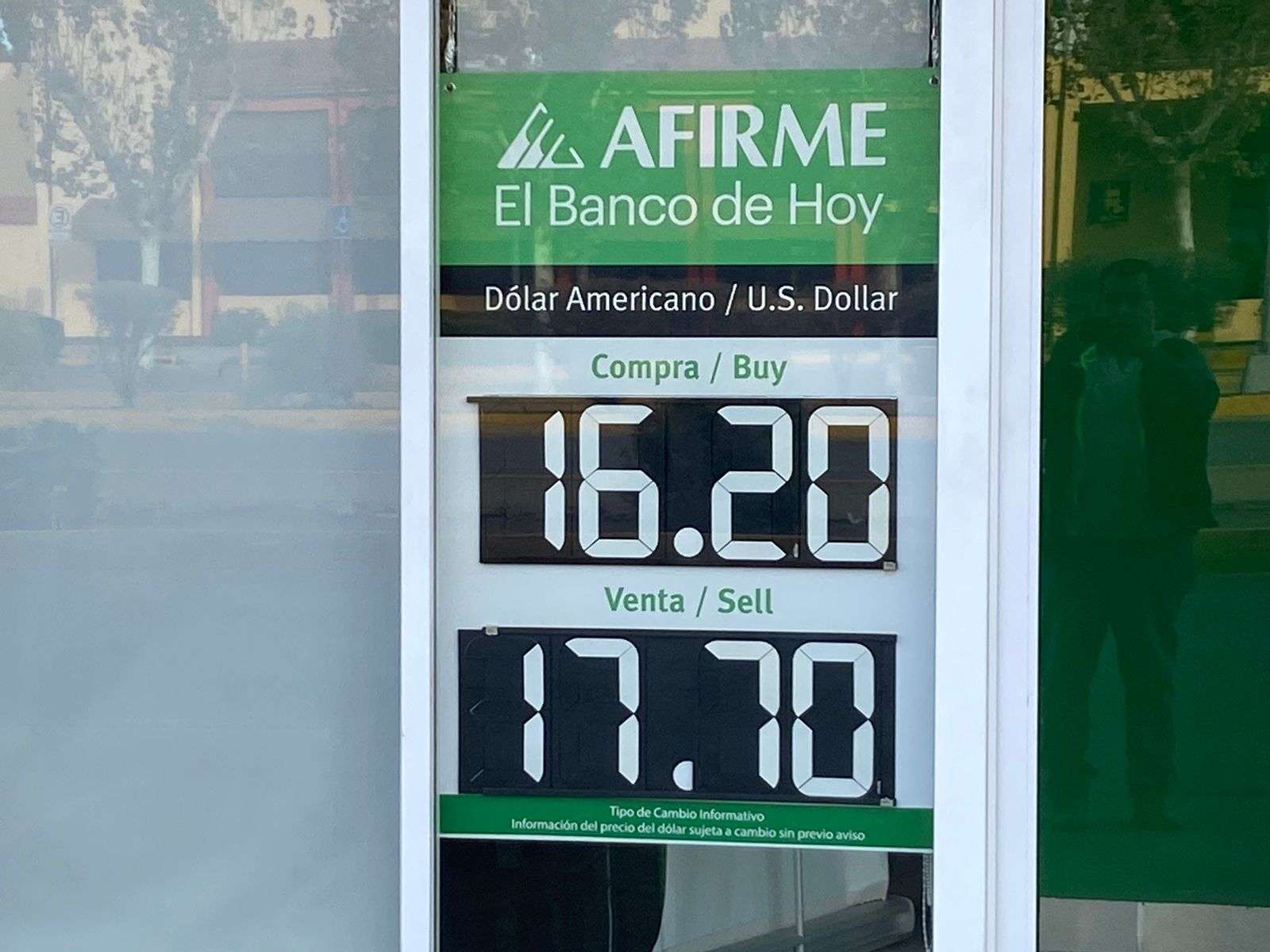 Mientras que en el Banco Afirme, el dólar se cotizó en un precio de 17 pesos con 70 centavos a la venta y 16 pesos con 20 centavos a la compra.