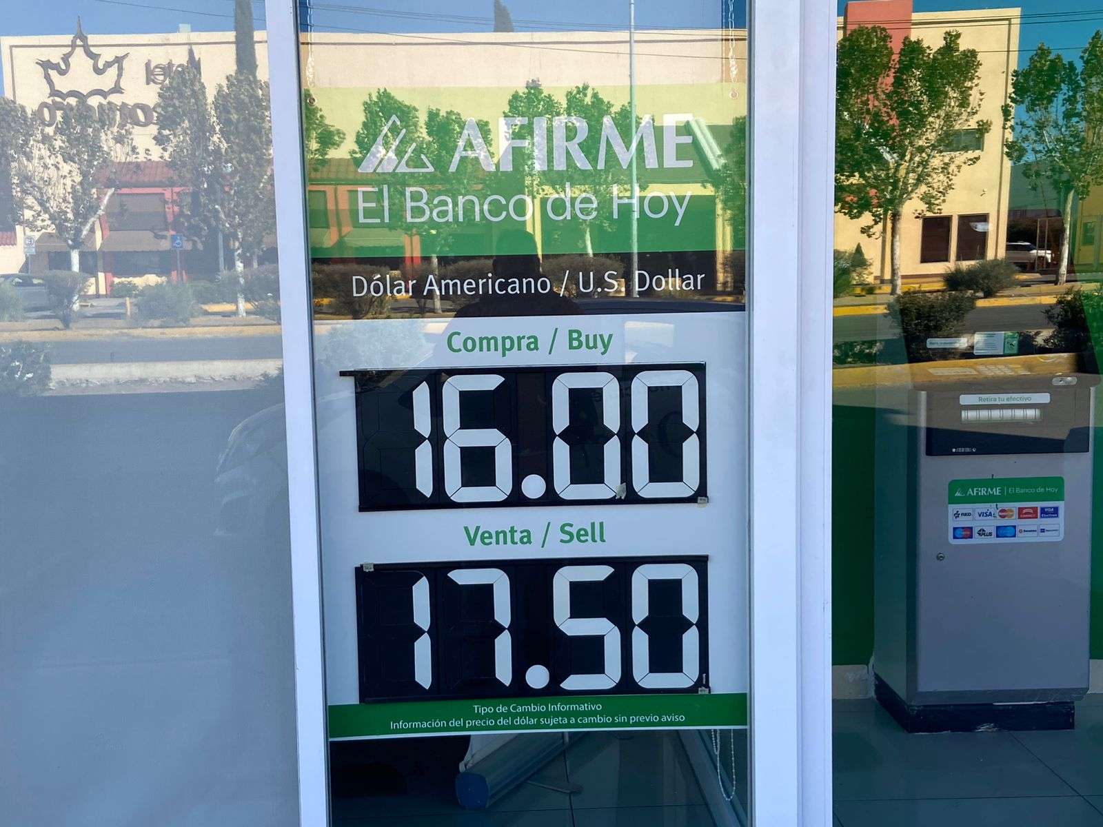Mientras que en el Banco Afirme el dólar se ofreció en un precio de 17 pesos con 50 centavos a la venta y 16 pesos a la compra.