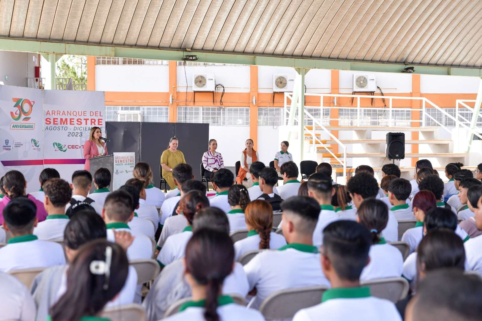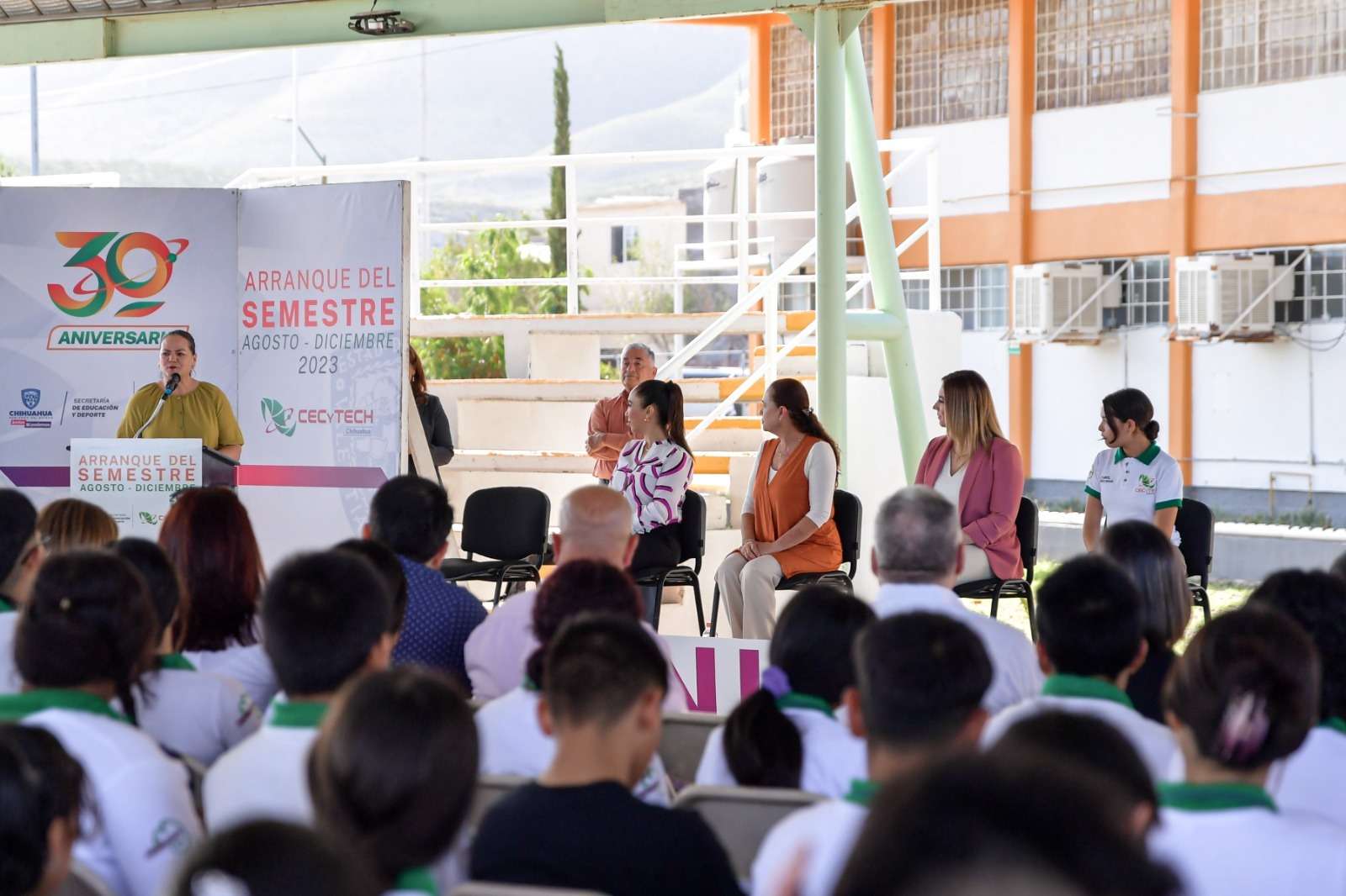 Gutiérrez Fierro dio la bienvenida al alumnado, al que dio a conocer que la indicación de la gobernadora Maru Campos es procurar que las y los jóvenes de Chihuahua, reciban una educación de calidad que atienda el aspecto académico y su desarrollo integral.