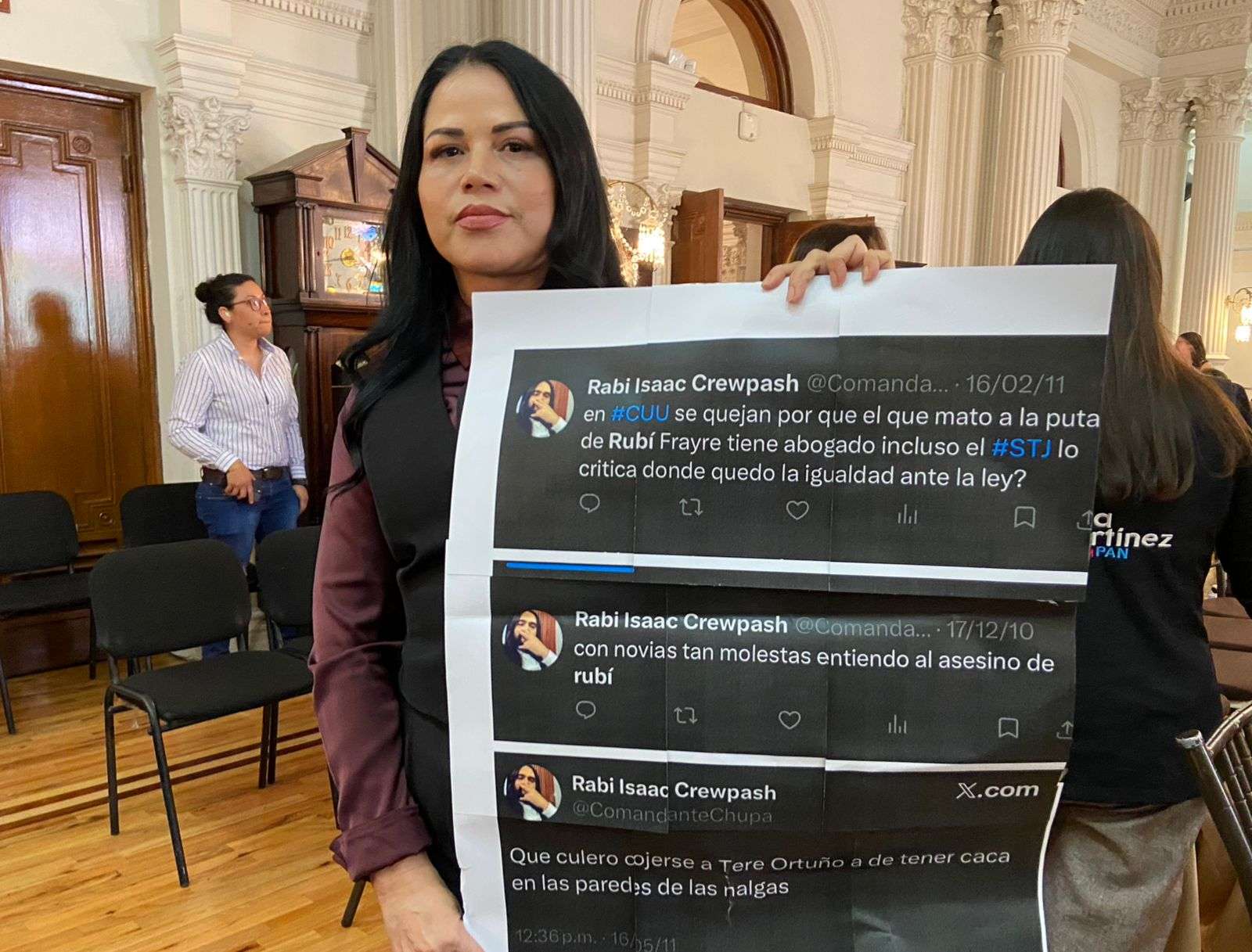 “Le exigimos a la diputada que destituya a este personaje por sus actos. Nuestros colaboradores reflejan lo que somos. ¿Cómo puede exigir que se destituya a otros cuando en su equipo ocurre lo mismo? No se puede utilizar la violencia de género sólo para sacar raja política”, expresó Isela Martínez.