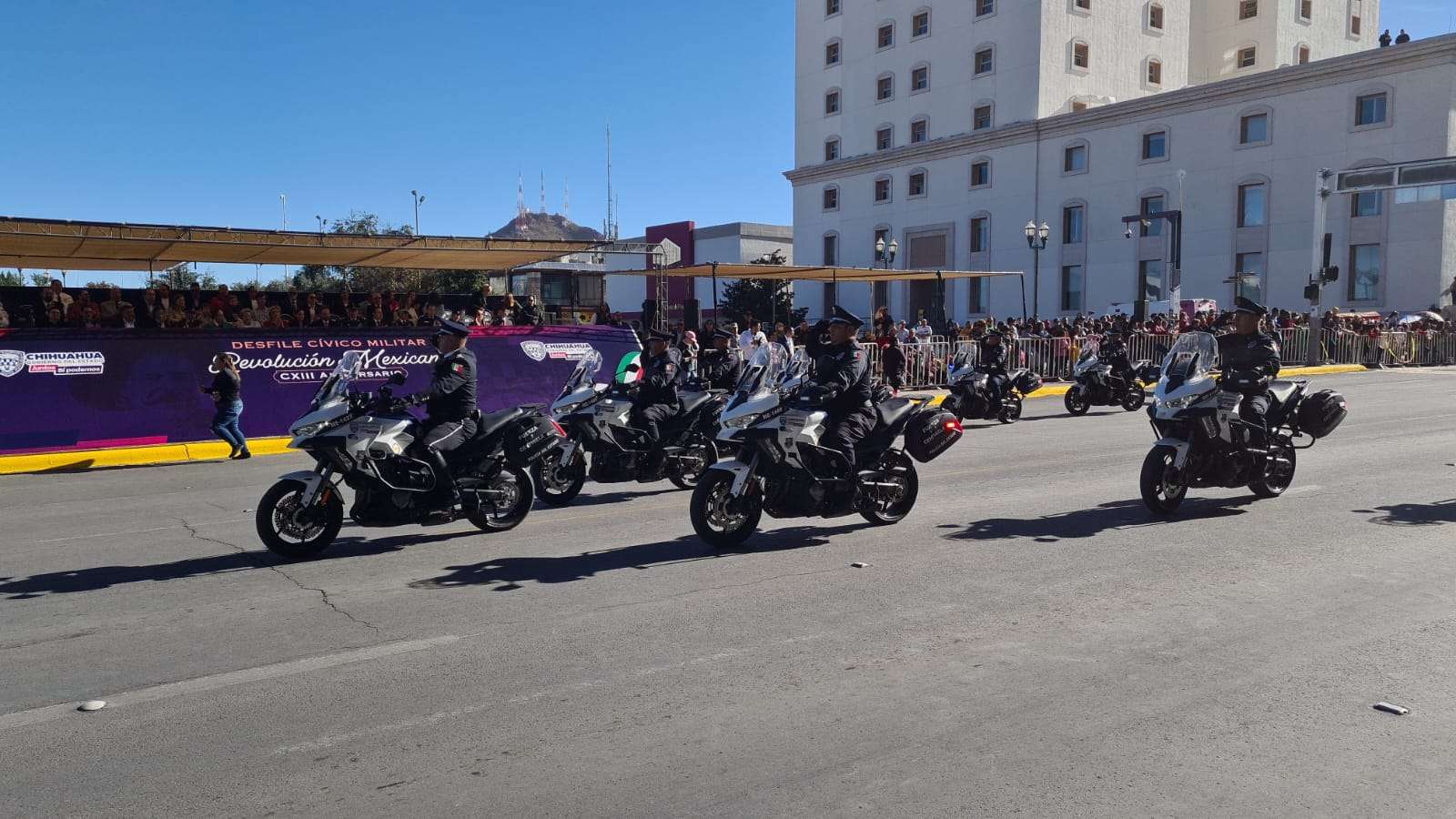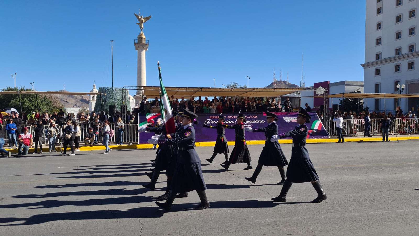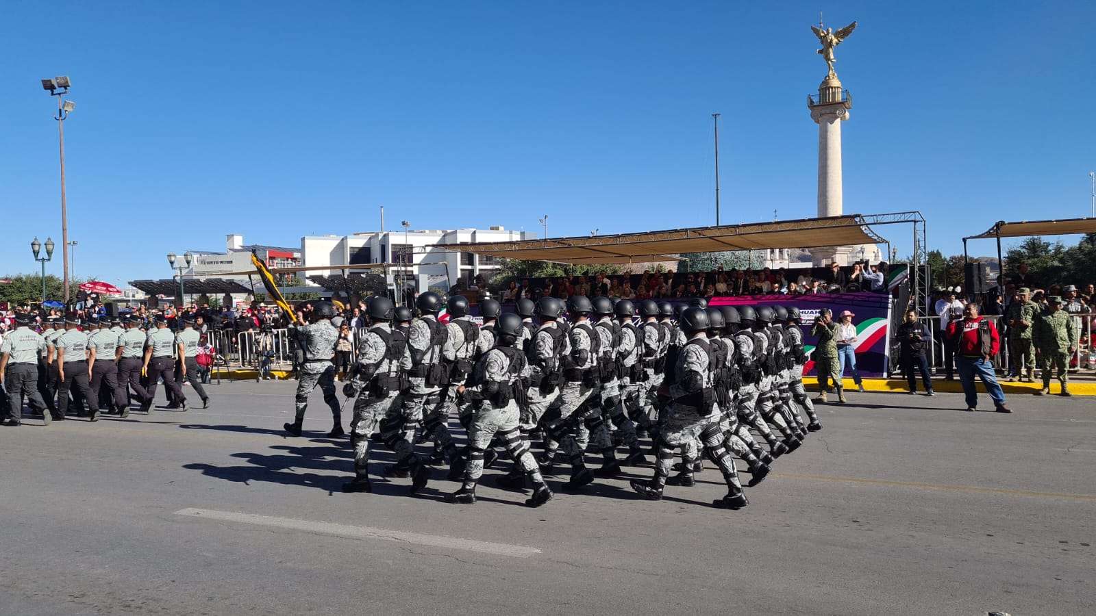Chihuahua.- En el desfile que conmemora el 113 aniversario de la Revolución Mexicana, destacó la presencia del ejército mexicano y la Guardia Nacional.
