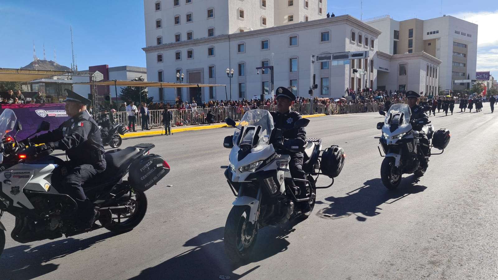 Los miembros de la fuerza de seguridad en nuestro estado desfilaron con enormes carros alegóricos.