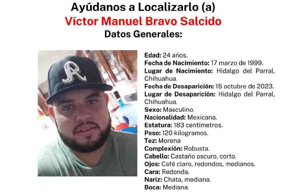 Chihuahua.- La Fiscalía General del Estado (FGE) difundió la pesquisa del cantante que fue privado de la libertad en un drive in ayer en la noche, en la ciudad de Parral.