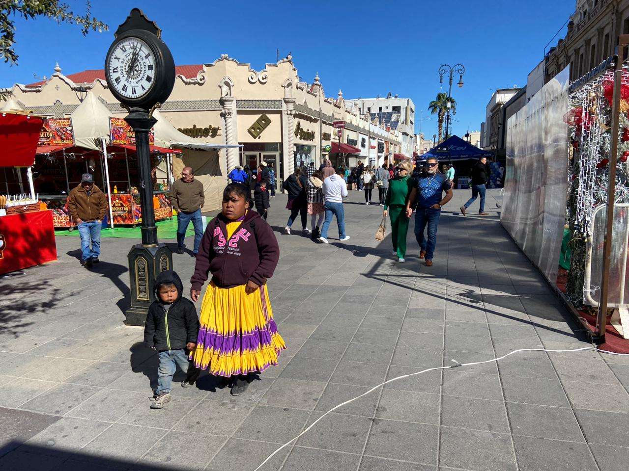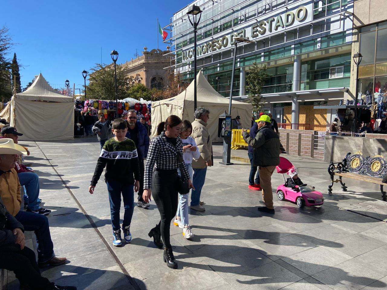Chihuahua.- Las calles del corazón de la colonia Centro se impregnaron de un ambiente festivo, con una animada multitud de chihuahuenses que decidieron pasar el día de Navidad explorando y disfrutando de la Plaza de Armas el 25 de diciembre.