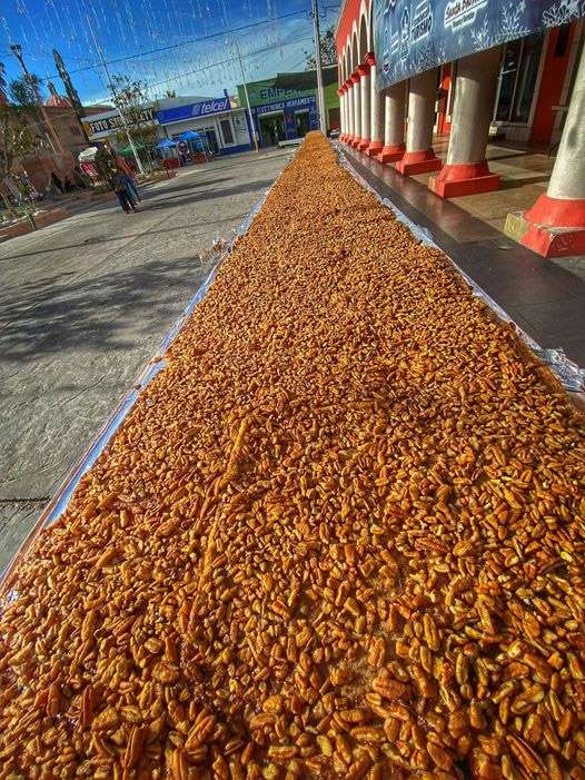 “Ven por tu rebanada del pay de nuez más grande del mundo. Te esperamos hoy sábado a partir de las 5:00 pm. frente a Presidencia Municipal”, añade el mensaje en el cual también se encuentra una fotografía en la que se observan varias meses a lo largo de decenas de metros, en las cuales se encuentra el pay.