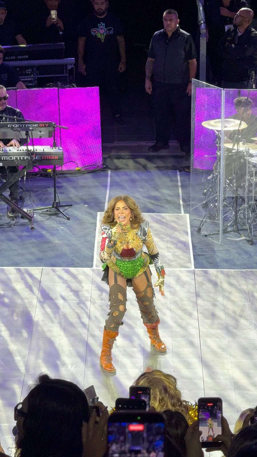 Desde su salida al escenario, la intérprete puso a cantar y bailar a los miles de asistentes que abarrotaron el recinto para disfrutar de su espectáculo.