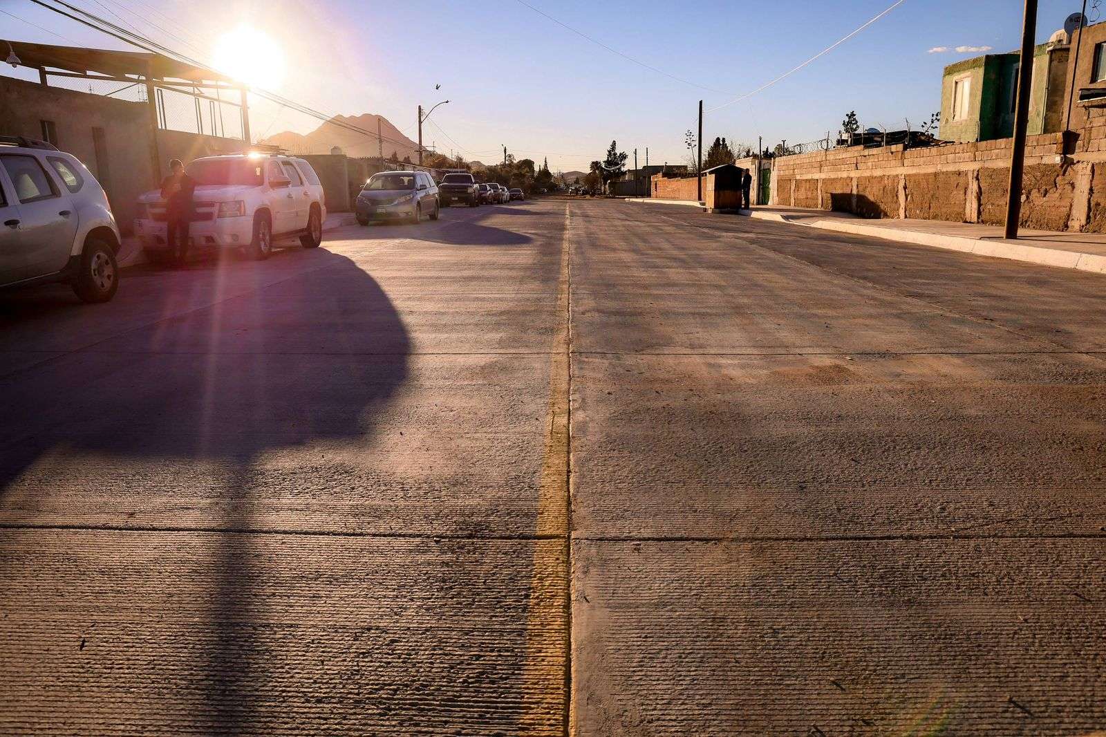 Chihuahua, Chih.- El alcalde Marco Bonilla recorrió la calle Décimo Tercera de la colonia Villa Juárez a fin de entregarle a los colonos esta pavimentación con concreto hidráulico que fue realizada gracias al Presupuesto Participativo.