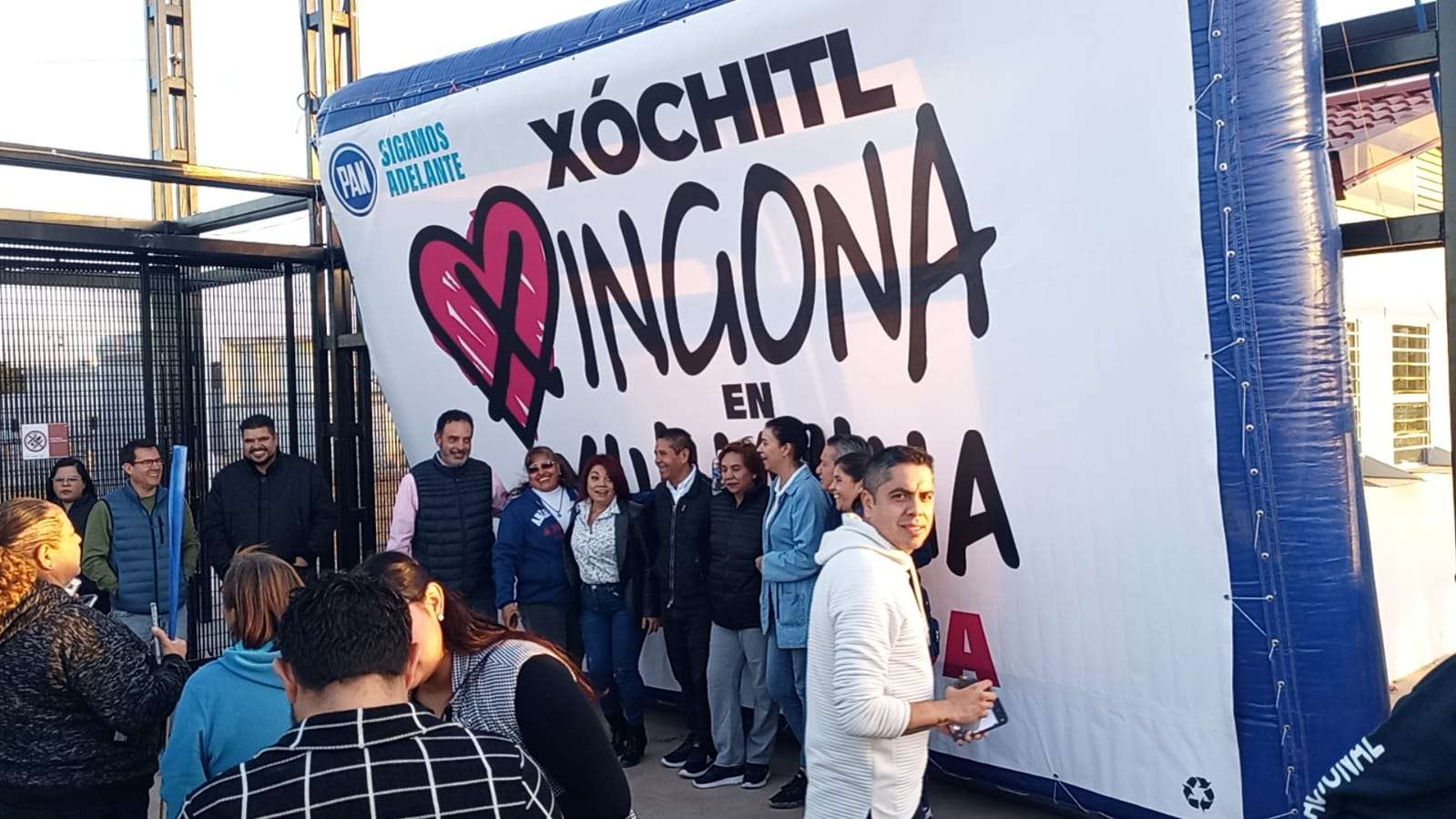 Al exterior del Poliforum se colocaron cerca de 2 mil 500 sillas con pantallas gigantes para que más asistentes al mitin pudieran escuchar el mensaje de precampaña de la candidata de la coalición.