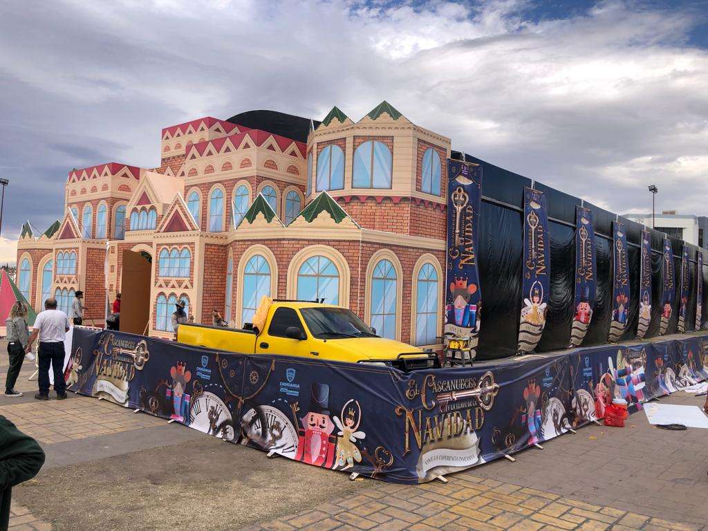 En fotos exclusivas de la Opción de Chihuahua, se pudo captar parte de la Casa de Santa, donde se pudo apreciar en la entrada donde inicia el recorrido, un árbol navideño de más de tres metros aproximadamente, una chimenea con fuego artificial, un cuadro del cascanueces, unos sillones del recibidor y unos bellos candiles que cuelgan del techo.