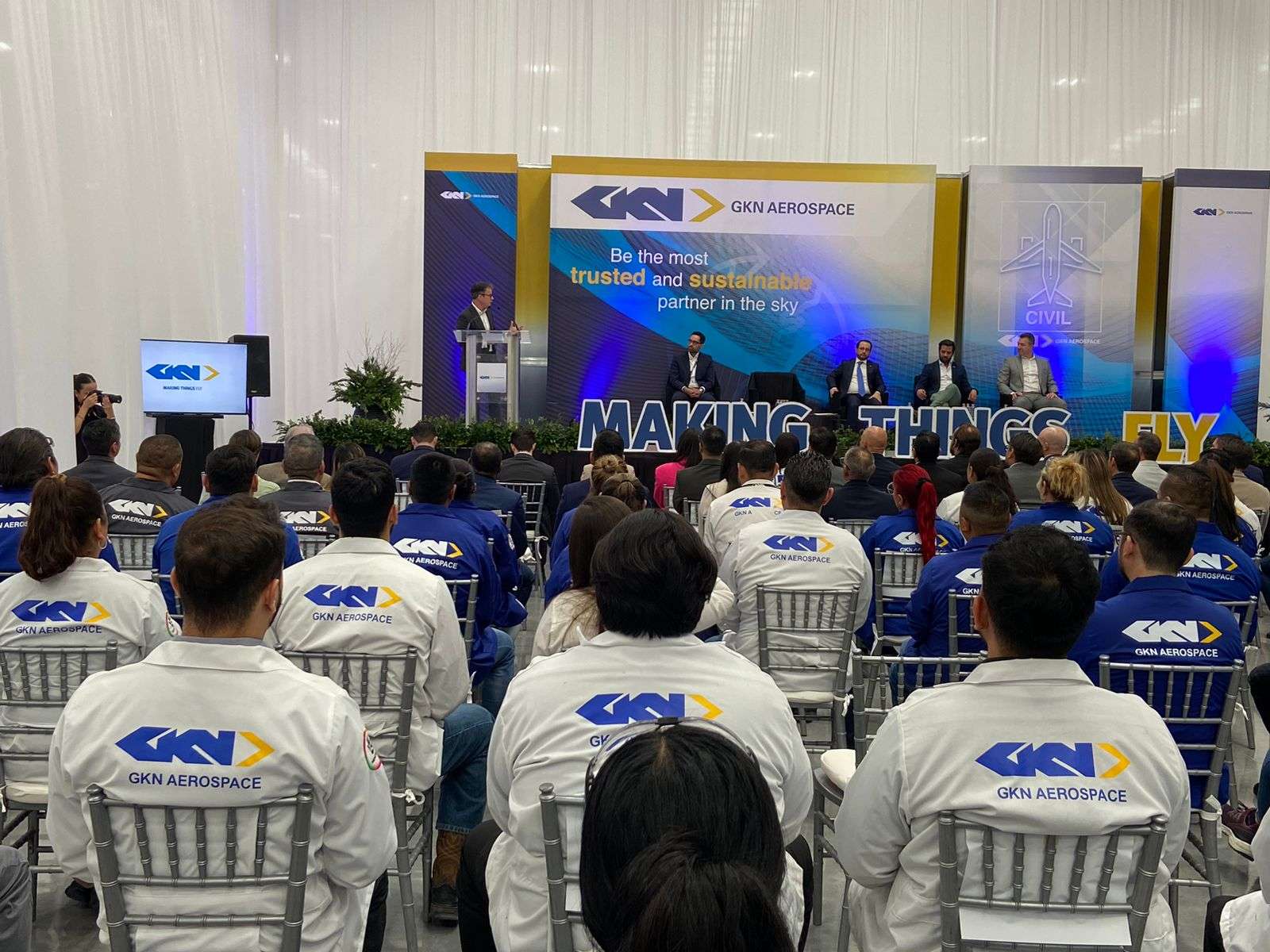 En el presidium estuvieron el Ceo de GKN Aerospace Peter Dilnot, Mauricio Herrera Gerente de la Planta, Ulises Fernández Secretario de Innovación y Desarrollo Económico, René Espinoza Presidente de Index, Malachi Momper Director de Operaciones de Norteamerica.