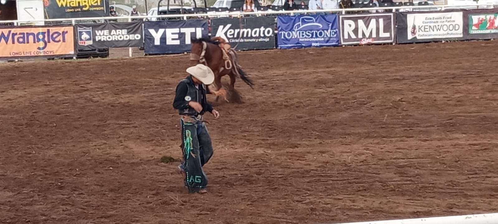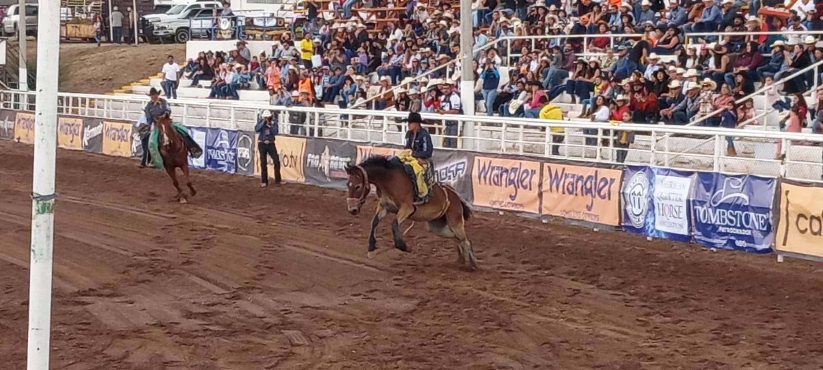 Inicia el torneo de rodeo en sus diferentes disciplinas de monta de caballo, lazo de parejas máster y monta de caballo con montura en esta disciplina tienen que durar 8 segundos montando al caballo.