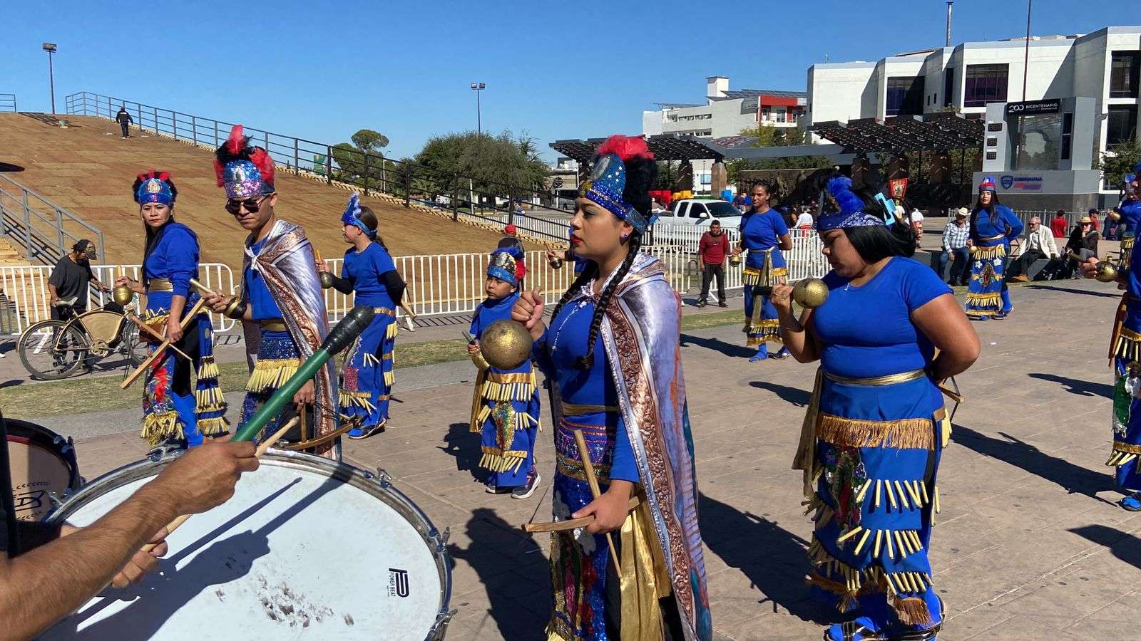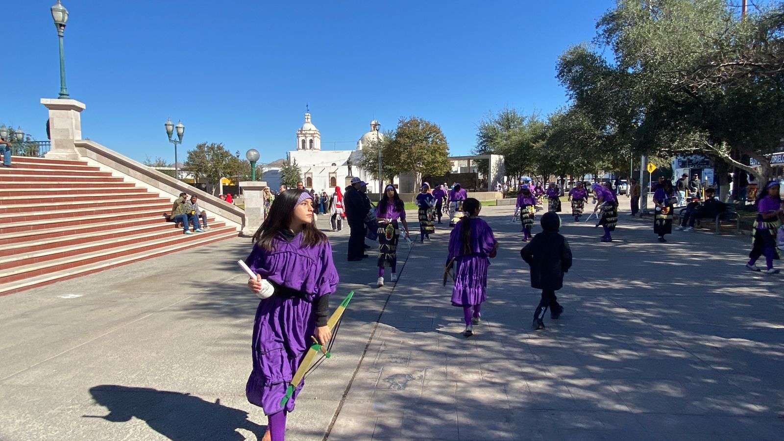 Chihuahua. - Alrededor de 60 danzas de matachines se congregaron este domingo en la Plaza del Ángel para iniciar las peregrinaciones a la Virgen de Guadalupe, danzando en agradecimiento y devoción.