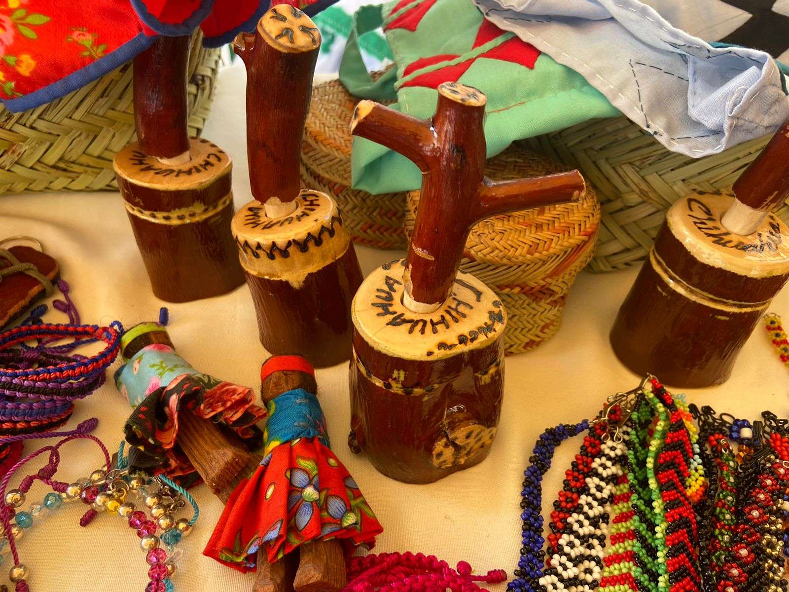 Chihuahua.- Invitan expositores a visitar en el último día, la Feria Artesanal CUU en la Plaza de Armas, donde están ofreciendo diversos artículos artesanales y por supuesto los tradicionales puestos de comida típica de la etnia tarahumara.