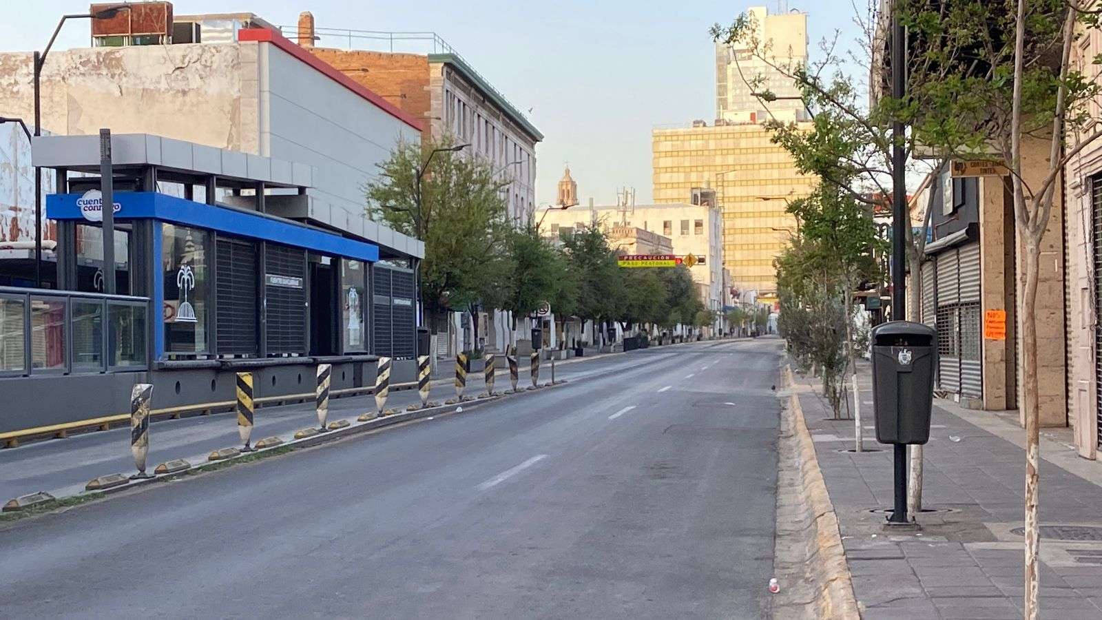 La avenida Juárez, Carranza y Aldama de la colonia centro, estuvieron con poco flujo vehícular y se pudo observar algunas personas en las calles transitando o esperando el camión.