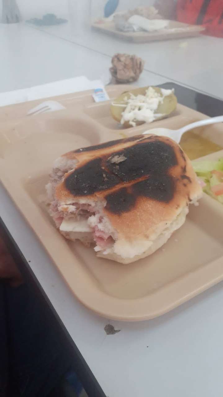 En los últimos días trabajadores hicieron llegar imágenes de  una torta supuestamente de lomo donde se ve el pan frío y quemado, sin ningún  aderezo, además que se observan trozos de carne cruda, esto es con lo que los alimentan y se supone que con esa comida deben de recuperarse para continuar realizando su trabajo, pero la realidad es otra muy diferente.Los abusos en este centro de trabajo son muchos y reiterados, además de los bajos salarios que perciben y las pocas oportunidades de crecimiento que tienen los trabajadores, quienes hasta con 20 años de antigüedad reciben un salario de $1, 500.00 por semana.