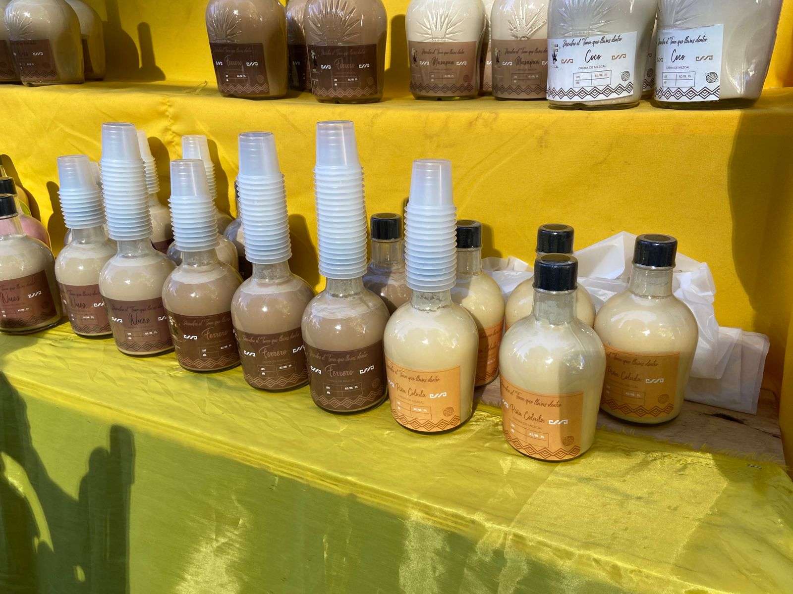 Asimismo, están ofreciendo crema de mezcal de diferentes sabores y macerados de mezcal que es jugo con mezcal de sabores de frutos rojos, uva, arándano, frutos verdes, frutos amarillos, mora azul, granada y maracuyá.