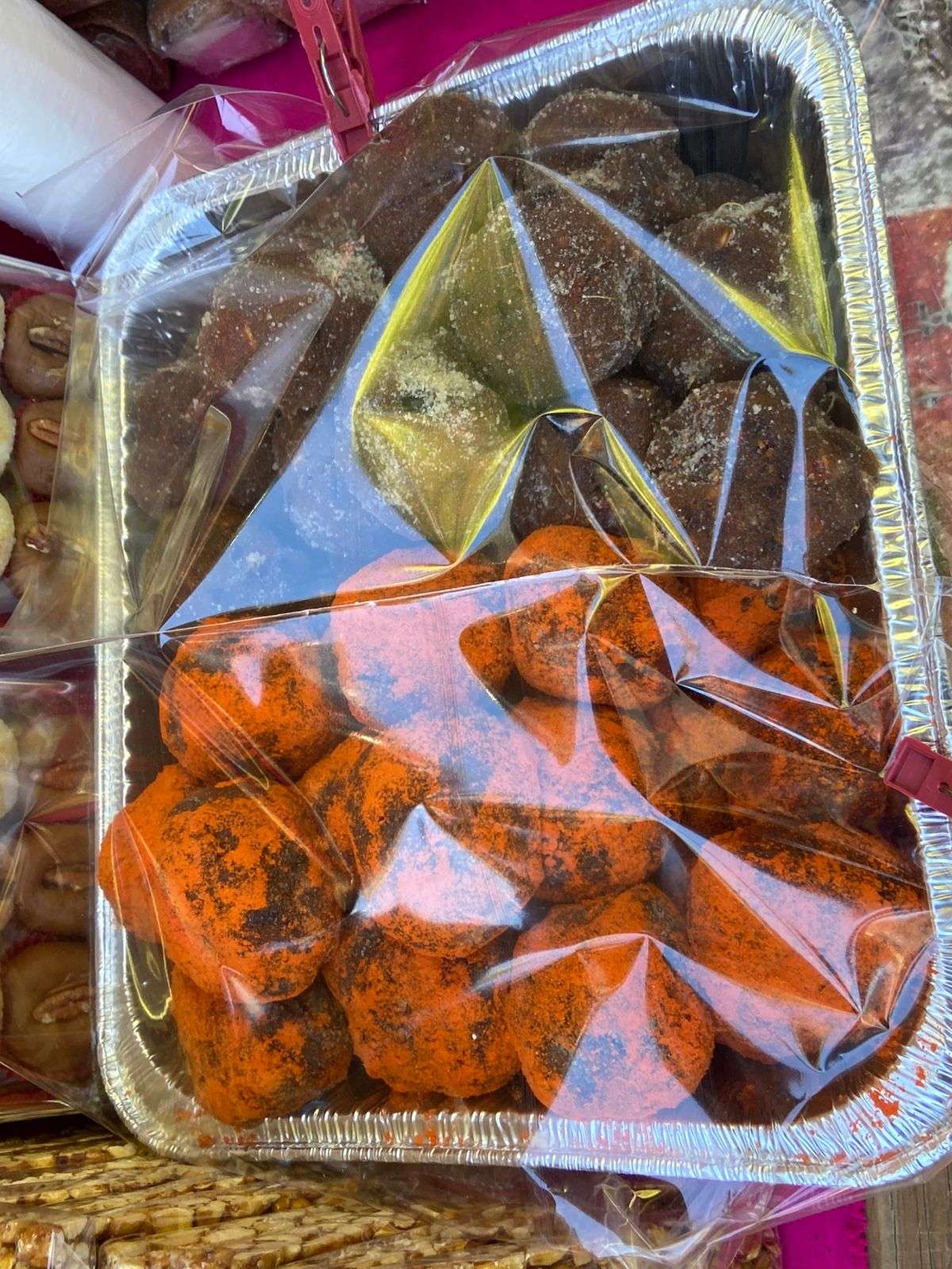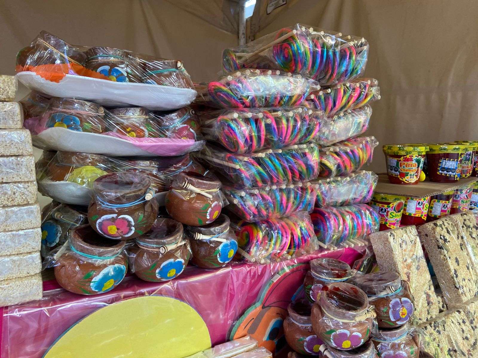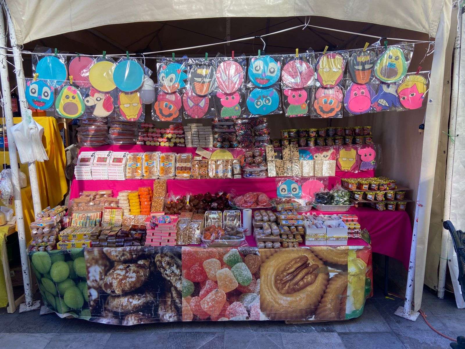 Además, están ofreciendo dulces típicos como borrachitos, obleas, alegrías, palanquetas, camotes de puebla, calabaza cascara de limón rellena de coco, cocadas, tarugos de tamarindo a precios accesibles.