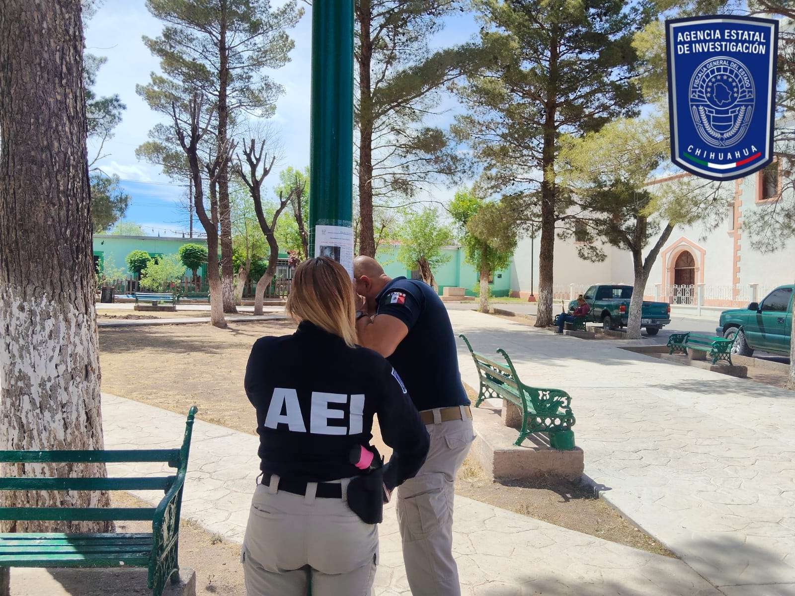 Casas Grandes.- Personal de la Fiscalía de Distrito Zona Noroeste, realizó en Casas Grandes, un operativo coordinado con la Agencia Estatal de Investigación, para la pega y difusión de pesquisas de una persona con reporte de extravío.