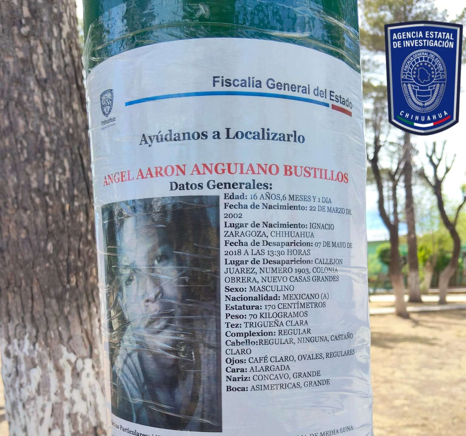 La acción policial se realizó ayer 07 de abril a partir de las 13:30 horas en lugares concurridos del lugar en mención, para la búsqueda y localización del masculino identificado como Ángel Aarón Anguiano Bustillos, el cual cuenta con reporte de desaparición del día 07 de mayo del año 2018, en el municipio de Nuevo Casas Grandes.