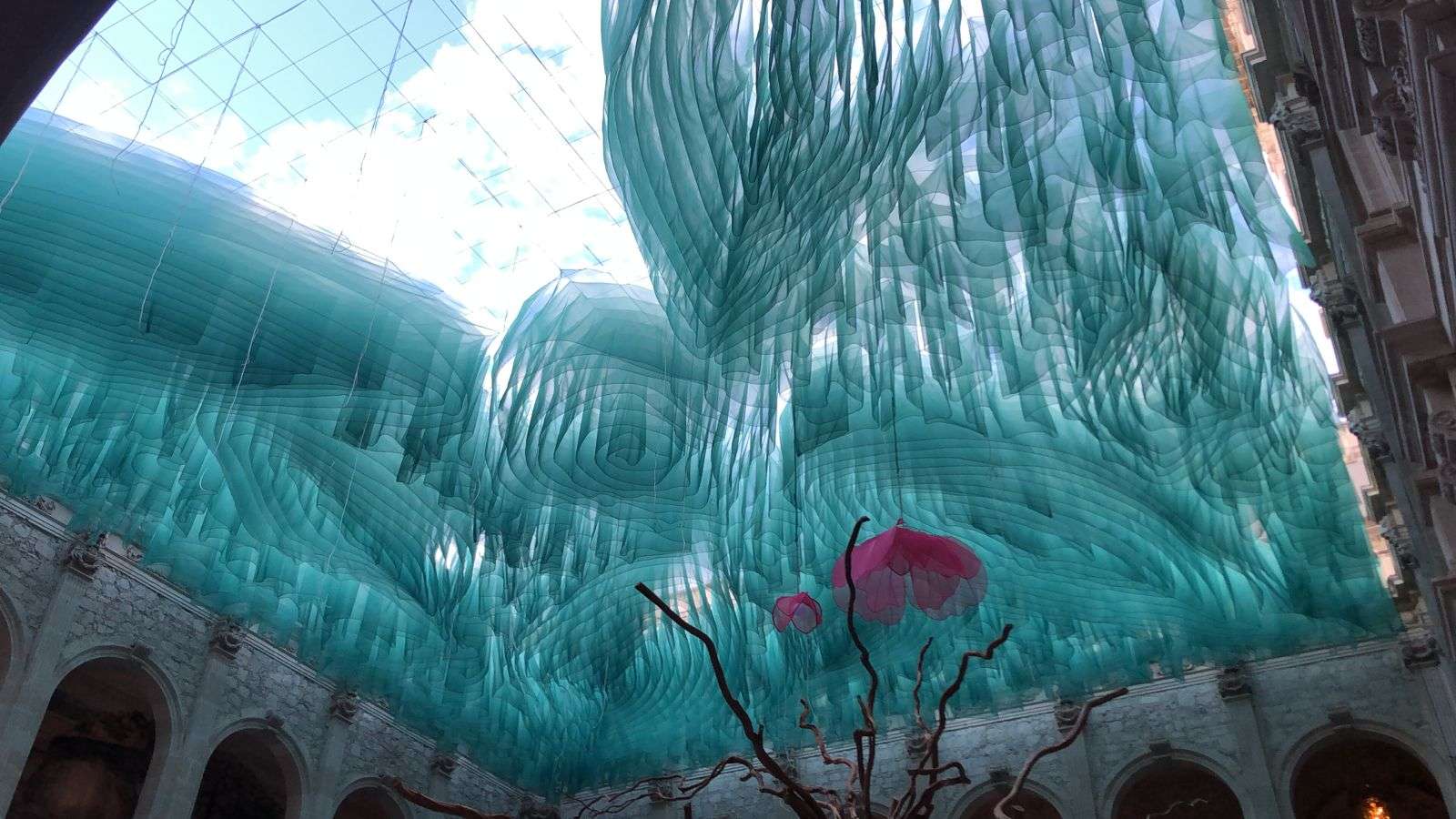 La hermosa arquitectura del palacio fue adornada con una decoración sofisticada y elegante que fluye con el viento y parece estar llena de vida con el movimiento el edificio ha sido adornado con gran esmero para recibir ese día a los asistentes.