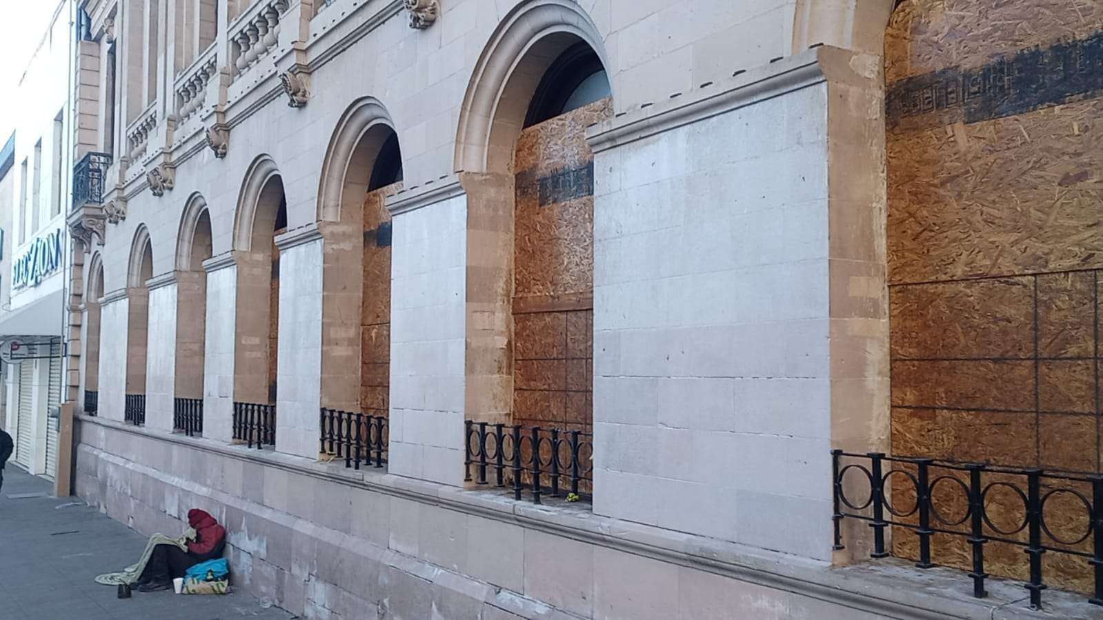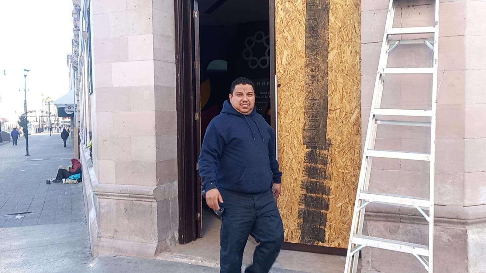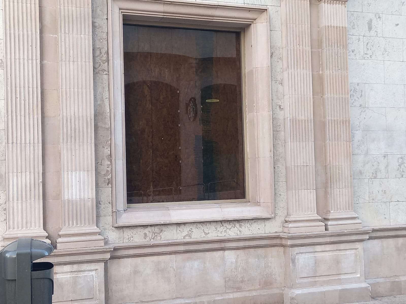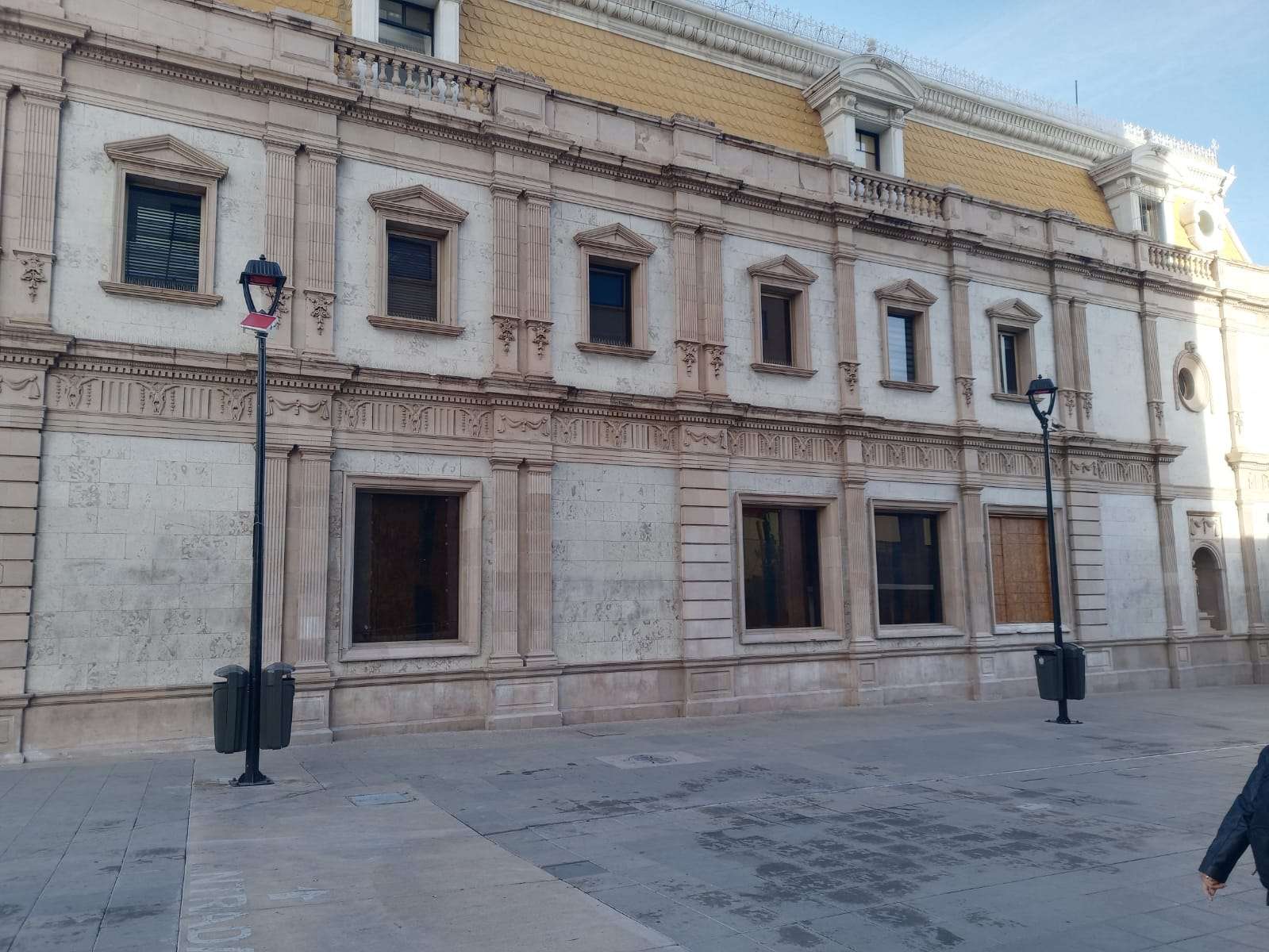 Chihuahua.- Personal de Servicios Generales del Municipio de Chihuahua protegieron ventanas y puertas del Centro de Desarrollo Cultural y el edificio de la Presidencia Municipal debido a la marcha del 25N que se realizará este fin de semana en la ciudad.