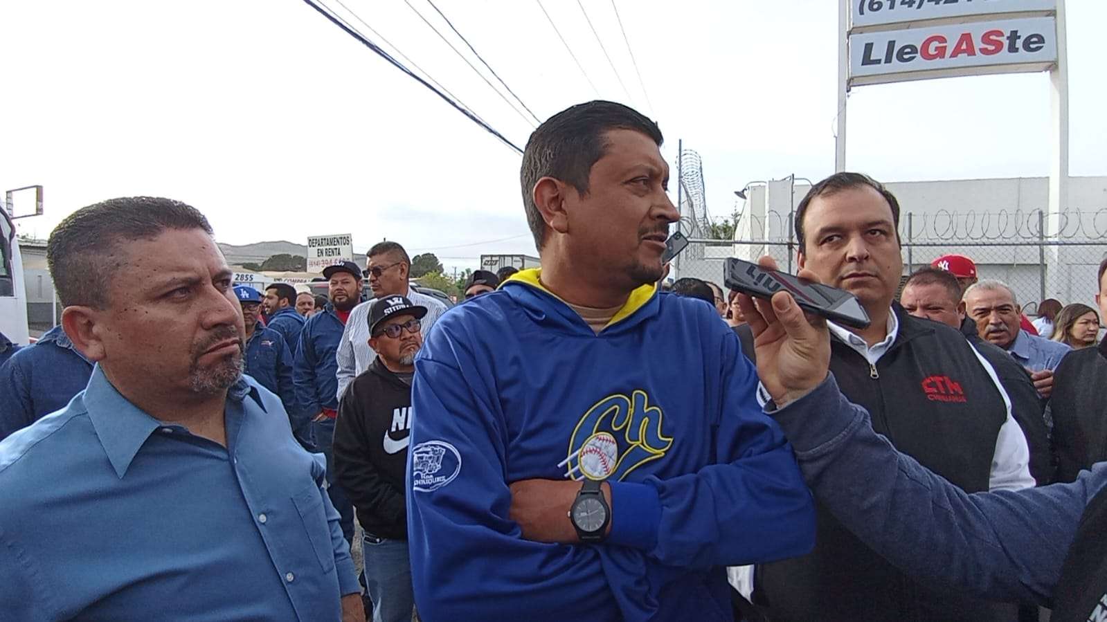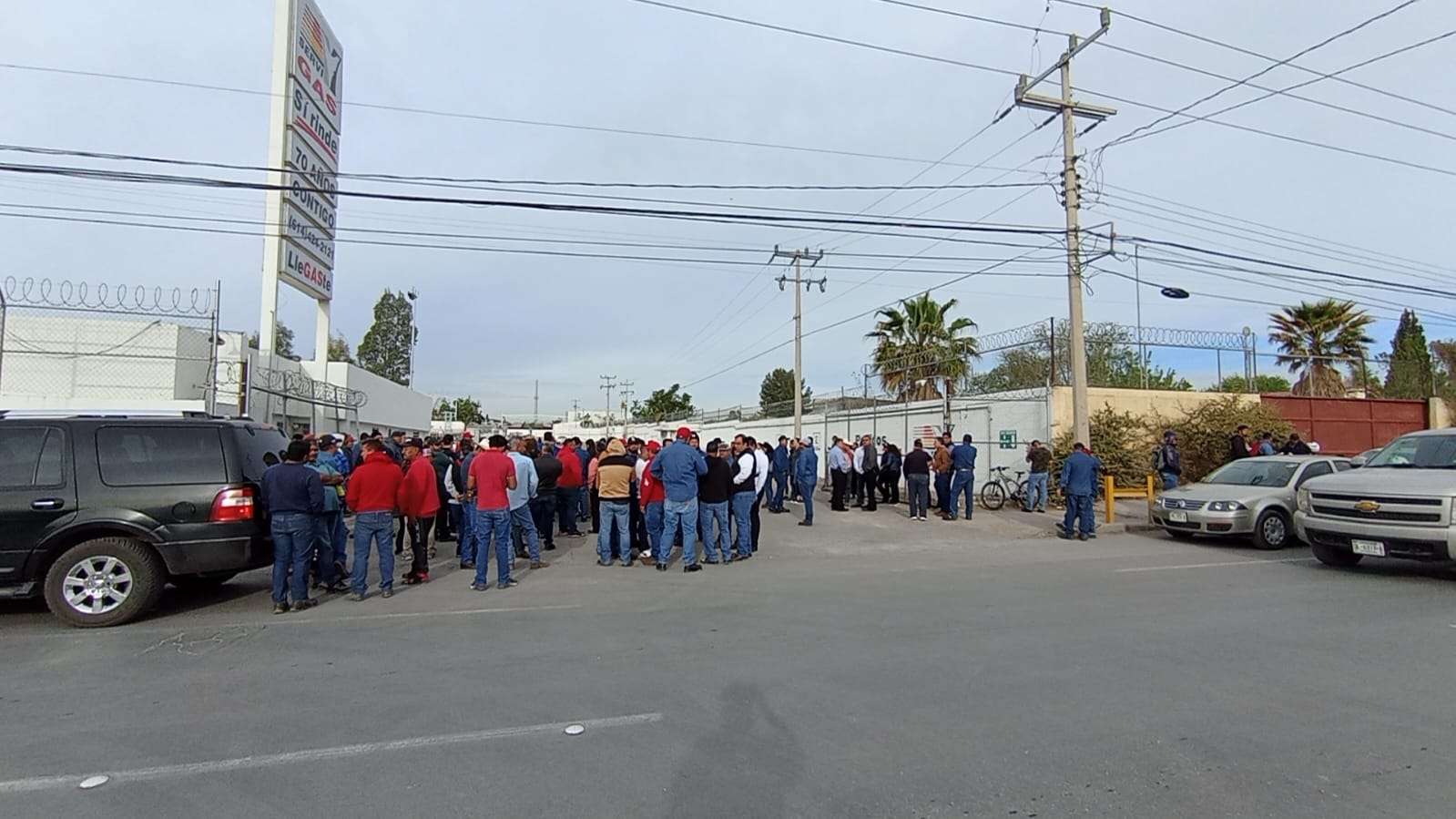 Chihuahua, Chih.- Trabajadores de la empresa ServiGas se manifestaron esta mañana al exterior de la empresa ubicada sobre la avenida Heroico Colegio Militar exigiendo que reinstalarán a su secretario general Luis Tapia a quién habían elegido como líder sindical.
