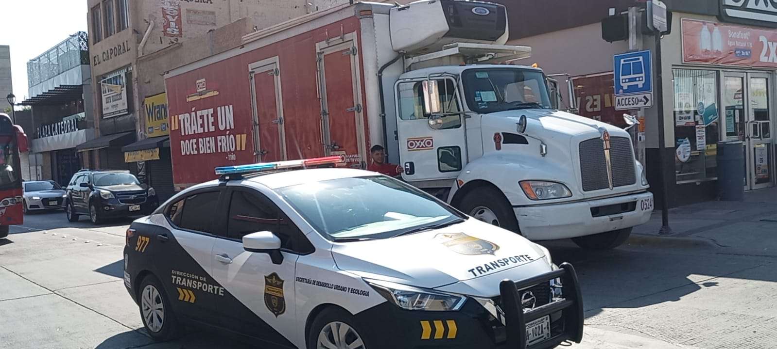 El camión se paró en el OXXO ubicado en el cruce antes mencionado y sin importar que atrás de él venían vehículos, descendieron dos personas y comenzaron a bajar mercancía del pesado camión.
