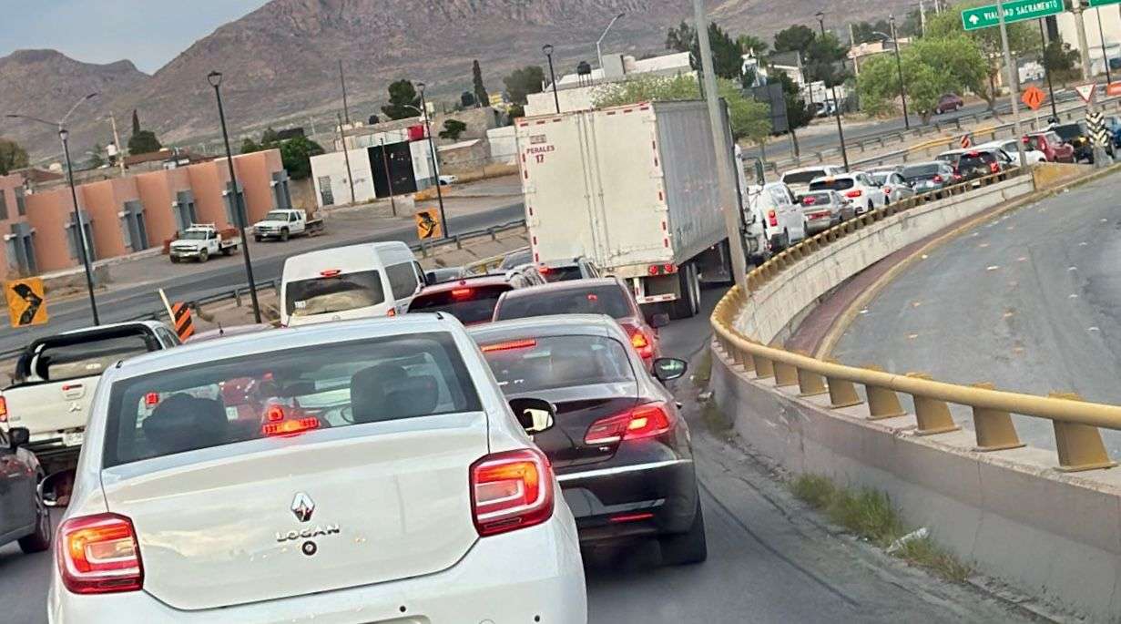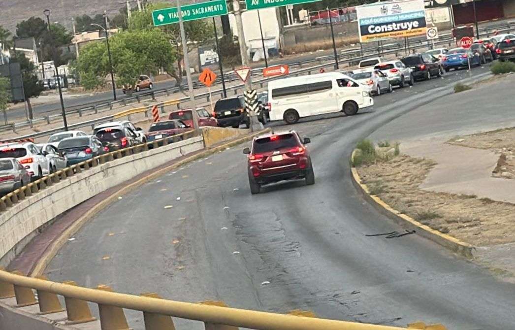 Chihuahua.- Un choque en el que se vieron involucrados tres vehículos, entre ellos una motocicleta, se registró la tarde de este lunes a un costado de las obras del paso superior en la intersección de la avenida Los Nogales y la avenida de las Industrias, estrangulando el transito vehicular de la zona.