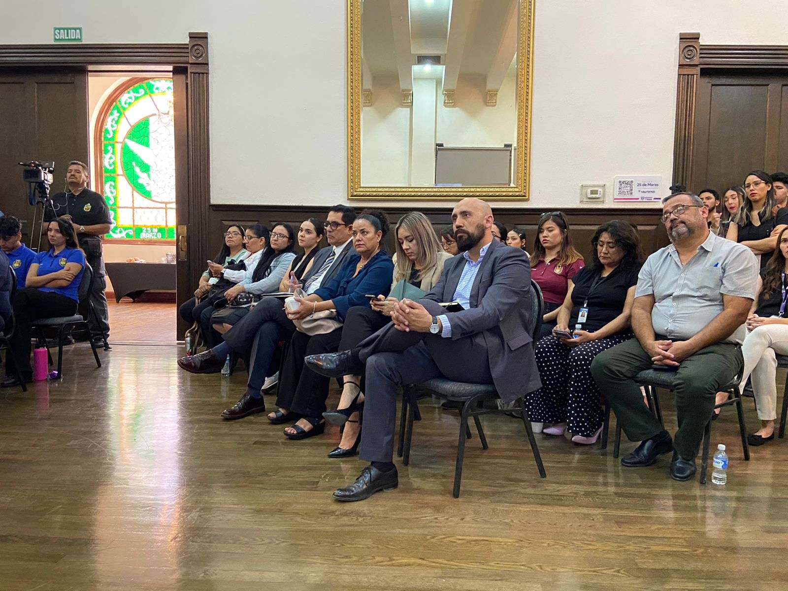En el presidium estuvieron presentes Guilda Vanessa Rodríguez Directora Jurídica de la Secretaría de Salud, Fernanda Martínez Directora General del Ichijuv, Raquel Bravo Directora del Instituto Chihuahuense deas Mujeres, Oscar González Luna Subsecretario General de Gobierno, Enrique Valenzuela coordinador General del Consejo Nacional de Población, Rafael Loera Secretario de Desarrollo Humano y Bien Común y Adriana Corral Unidad de Equidad de Género de la Secretaría de Educación y Deporte.
