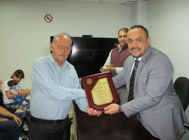 Durante la ceremonia, el Fiscal de Distrito Zona Sur, Guillermo Hinojos, entregó un reconocimiento en nombre del Fiscal General del Estado, César Jáuregui Moreno, así como de sus compañeras y compañeros de trabajo, quienes le expresaron su agradecimiento por su entrega, lealtad y vocación de servicio a lo largo de más de tres décadas.
