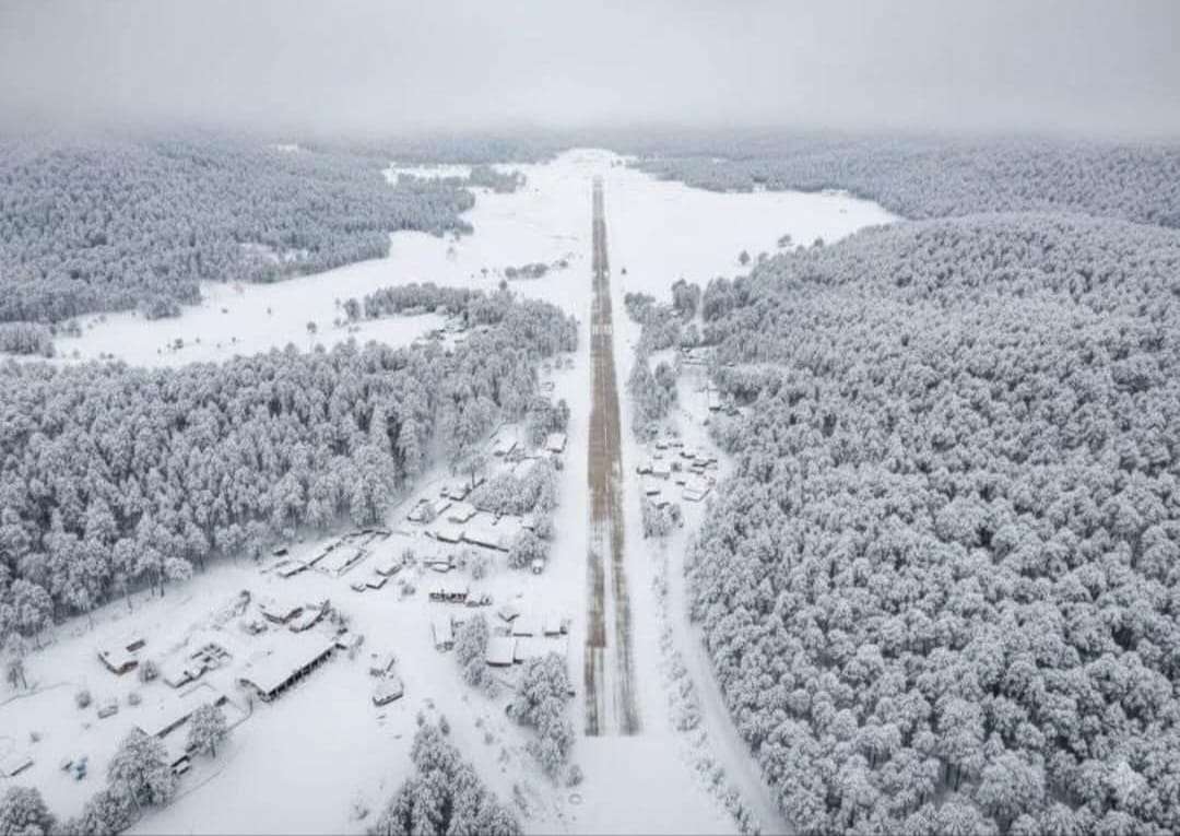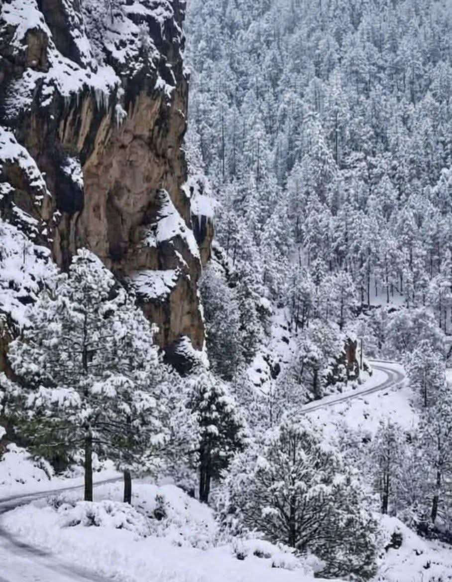 Asimismo, la Pista de Aviación "El Zorrillo", en Guadalupe y Calvo, también registró acumulación de nieve, dificultando un pocp la visibilidad y el tránsito en la zona, pero con una hermosa vista.