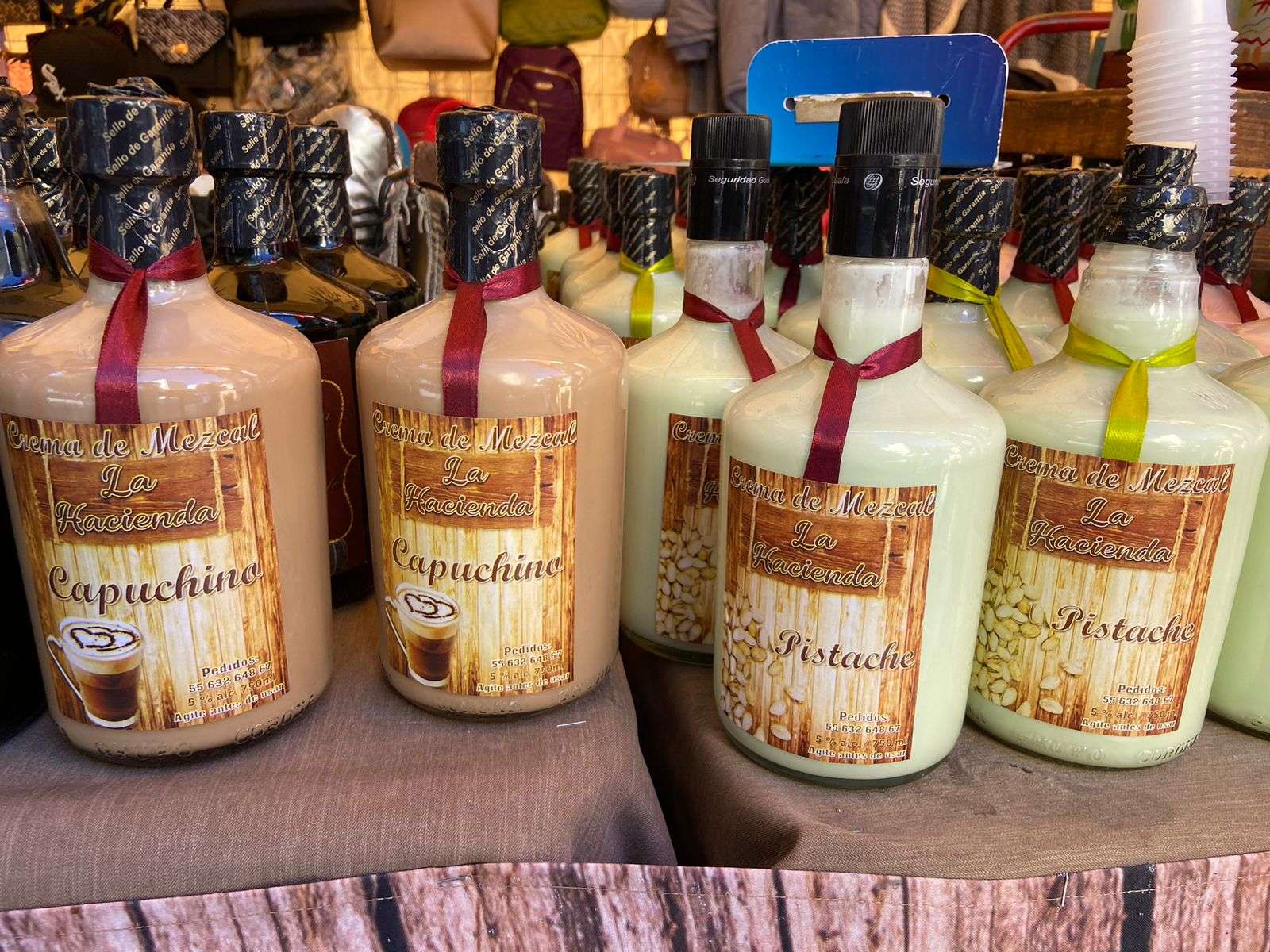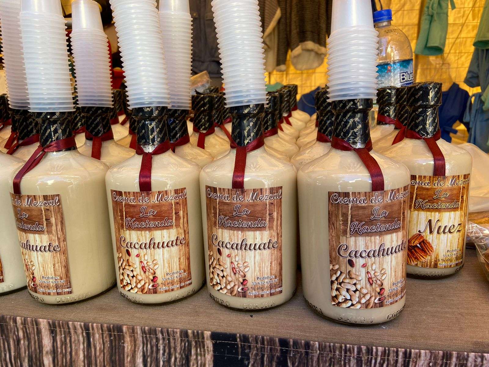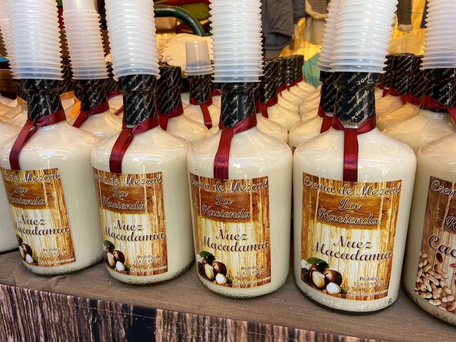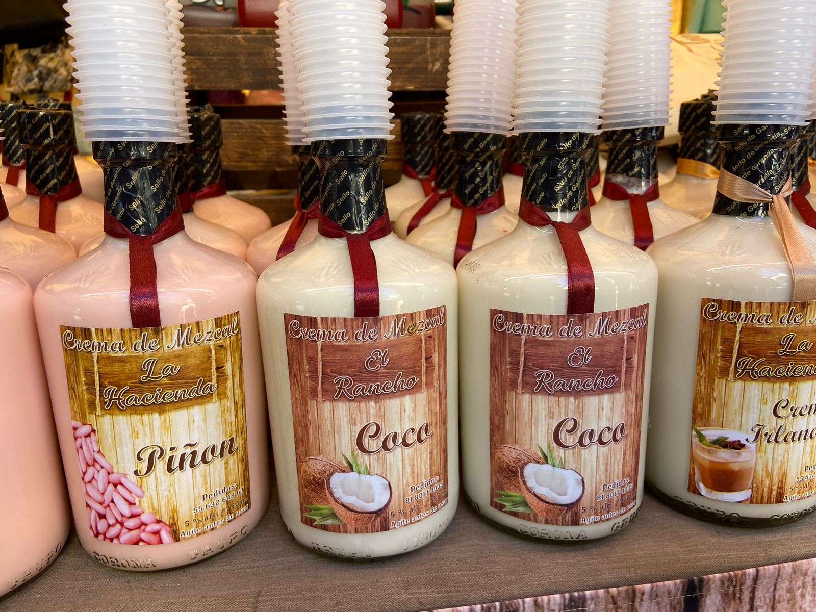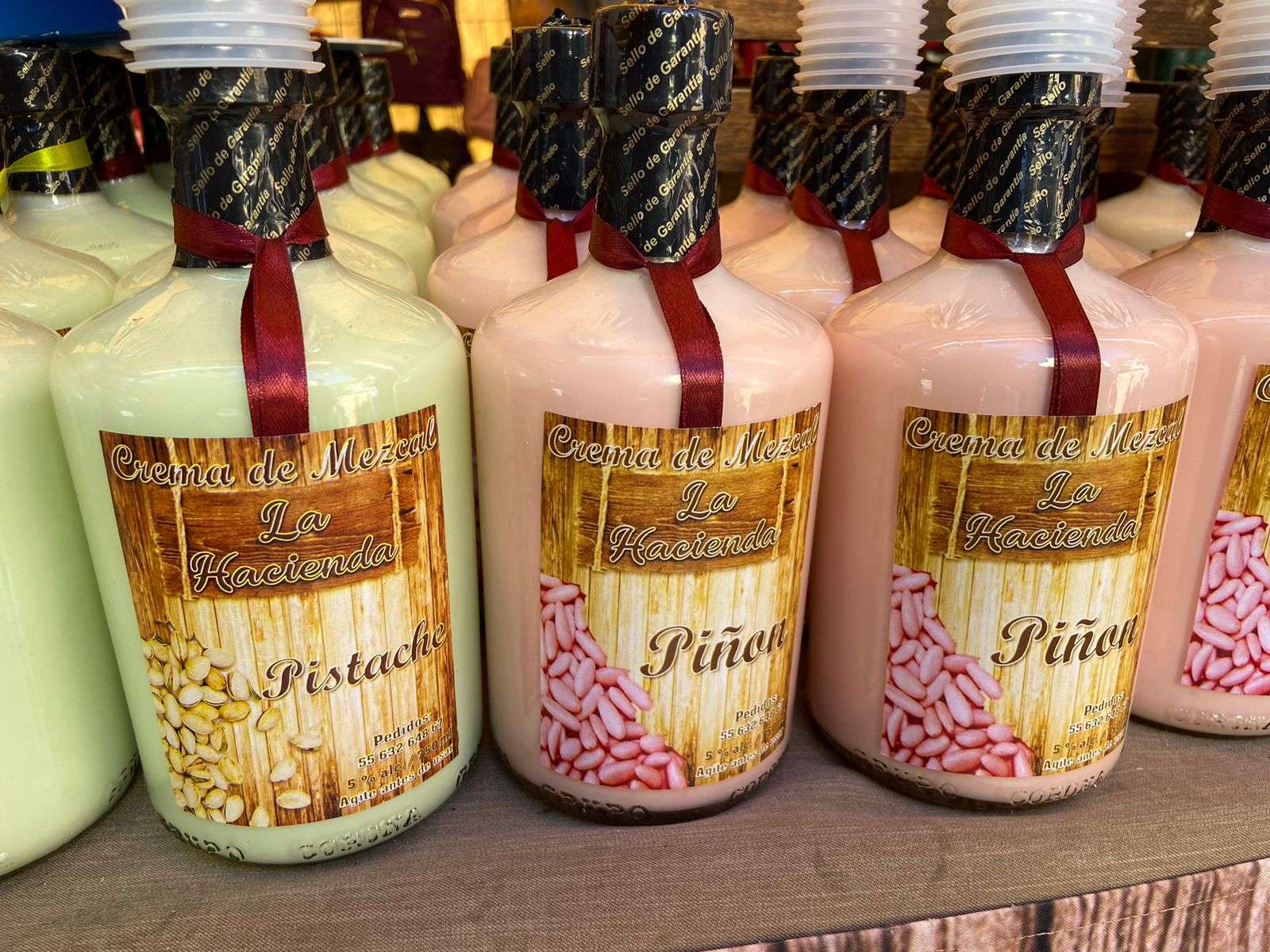 Señaló que las cremas de mezcal se pueden hacer de diferentes sabores, los que ofrece al público son de piñón, pistache, piña, nuez, coco, nuez de macadamia y de mazapán, y se venden a 200 pesos la botella.