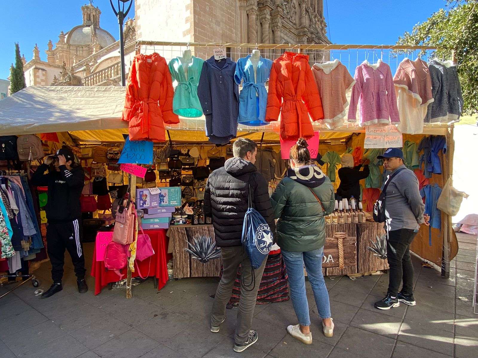 Chihuahua.- Vendedores de mezcal ofrecieron sus productos junto a otros comerciantes en la Plaza de Armas los cuales son comprados principalmente por los chihuahuenses para consumirlos en la fiesta de fin de año.
