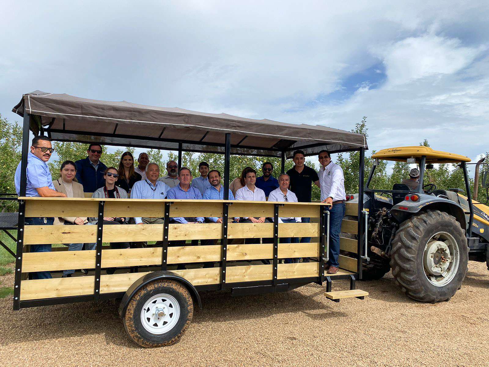 Namiquipa.- Acompañado por personal de la Secretaría de Innovación y Desarrollo Económico (SIDE), el rector de Universidad Tecnológica de la Babícora (UTB), Gabriel Loya Ruiz, personal docente y estudiantes de esa institución educativa, efectuaron un recorrido por las instalaciones de la cooperativa “Huerto Alegre” y los Viñedos Palomino en el municipio de Namiquipa.