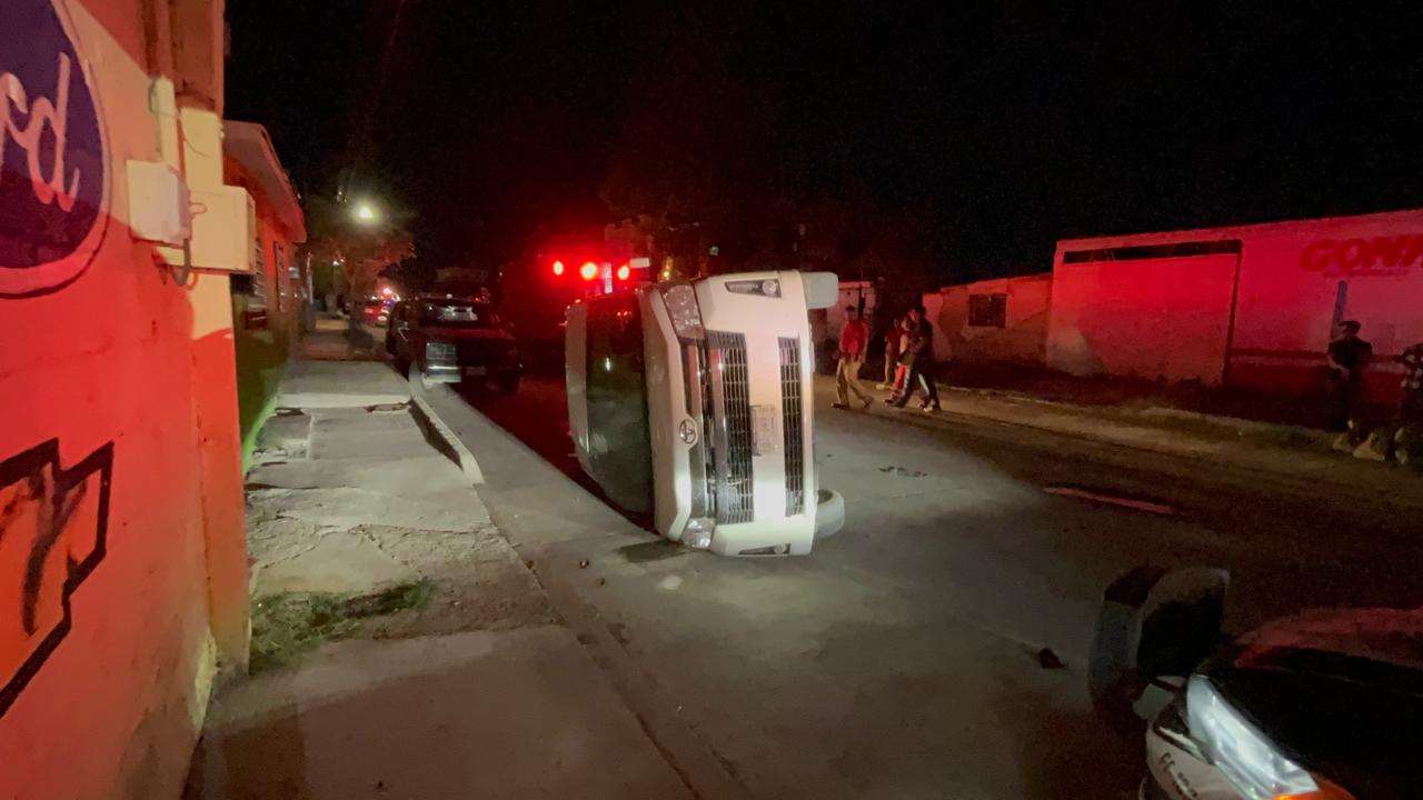 Chihuahua.- Dos personas resultaron con heridas leves, luego de un choque volcadura ocurrido la noche de este martes en la colonia Revolución.